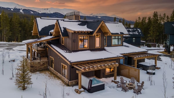 Ski Butlers offers you the best rental experience in the industry. No more lines. Ski Butlers is a full-service ski and snowboard company that delivers the equipment to you. Contact a villa specialist for more information. Welcome to Chalet Halara, located in the luxury neighbourhood bordering Shock Hill, within walking distance to the Gondola mid-station. Nordic skiing fans will love the ski-in, ski-out access to trails and bikers and hikers can easily access Cucumber Gulch Preserve for miles of outdoor entertainment. This stunning mountain modern home has huge windows, capturing the mountain views to highlight your Colorado vacation. Stylish finishes throughout give a chic and modern vibe to this luxury home. Enjoy a private deck and walk-out patio with your own private hot tub and fire pit. A welcoming open floor plan is perfect for entertaining, with a large gourmet kitchen, big mountain views and an elegant dining area. Wander outside for meals in warmer months and enjoy a large deck with a table and gas grill. Upstairs on the main level, the primary suite includes a king bed, TV, gas fireplace, desk, and an ensuite bath with a separate shower and tub and dual vanity sink. Downstairs you will find the three other guest rooms including two king suites, and a fun bunkroom for the kids with both twin-over-twin and twin-over-queen bunks with an ensuite bath. Head out to the lower patio and enjoy s’mores around the fire pit while you recap the day's events. Soak away your day in a private hot tub underneath a starry sky. A 5-minute walk gets you to the gondola mid-station or hit the cross-country ski trails right out the back door. Other amenities include a laundry room with a washer and dryer and a heated garage with space for two vehicles. Four-wheel drive is REQUIRED in the winter months. Regretfully, weddings and events are not permitted. This home enjoys complimentary use of the shuttle, mid-November through mid-April, using the convenient shuttle app to schedule pickups. The use of the shuttle is on a first-come, first-served basis. This home does not have air conditioning. Colorado's cool summer nights will keep this home comfortable by opening windows after the sun goes down, and then closing the windows and blinds during the day. Utilizing the overhead fans, if available, keeps airflow moving, and additional floor fans can be found in many bedroom closets. Can't live without it? A/C units may be available for rent for an additional fee. Breckenridge Business License No. 968580001 2,475 Sq. Ft.