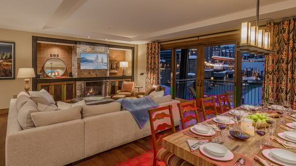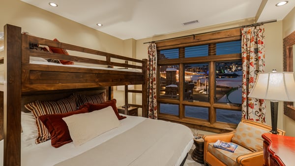 Ski Butlers offers you the best rental experience in the industry. No more lines. Ski Butlers is a full-service ski and snowboard company that delivers the equipment to you. Contact a villa specialist for more information. The Heavenly Peak residence has a prime slopeside location where, from the living room or deck, you can watch skiers and snowboarders come down the mountain. This exceptional 4-bedroom home offers the location, luxury and first-class amenities that make for a truly unforgettable vacation. The large gas fireplace, open floor plan and comfortable mountain furnishings create a warm comfortable feel and you will find it easy to entertain and enjoy the company of everyone in your group. This residence boasts beautiful new living room furniture and new carpet throughout. The professionally equipped kitchen with Viking appliances will delight aspiring chefs; who can also grill out on the deck on the built-in Viking gas while watching the action at the base of the mountain. Your group can comfortably gather round the dining table that will seat 10, with space for 3 more on new barstools at the kitchen island. The amazing mountain backdrop and stylish furnishings create the perfect setting for a memorable dining experience. When you are done entertaining and ready to retire for the evening everyone will find their own private, comfortable retreats. The primary bedroom offers a gas fireplace, king bed with new mattress for guests’ comfort and large ensuite bathroom with a large shower, soaking tub and two sinks. The additional bedrooms include a king room with another new mattress and large ensuite bathroom; and a bunkroom with two full bunk beds, plus a queen bed with twin bunk above. A second bunkroom features a twin over-king bunk bed. A small office with high speed internet is perfect for remote workers. A service fee will apply to all guests over the age of 10, paid directly upon checkout. Fee subject to change. Enjoy all the Resorts signature touches throughout, including exquisite gathering areas and one of the most beautiful day spas in the West. It also has a state-of-the-art fitness facility, motion studio, pool and hot tubs, family game room including a new Skee-ball machine, and a Little Tykes playroom for the younger kids. With complimentary continental breakfast and après ski, ski valet and on-call local shuttle, the private residences at One Steamboat Place have defined the first-class experience. This home enjoys air conditioning in summer. 2,426 sq. ft.