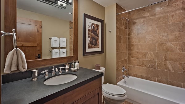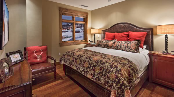 Ski Butlers offers you the best rental experience in the industry. No more lines. Ski Butlers is a full-service ski and snowboard company that delivers the equipment to you. Contact a villa specialist for more information. The Hahn's Peak residence, which spans a bridge at the entrance, offers a grandstand view of the ski mountain. Located close to the gondola and slopeside convenience. The large open floor plan combines the kitchen, dining and living areas to create a free-flowing space. The professionally equipped kitchen with Viking appliances, plus outdoor grill on the deck, will delight aspiring chefs in your group. This residence is designed for entertaining with a dining table that will seat 10. Larger groups can seat another three guests at the kitchen island. Additional chairs are available for additional dinner guests. Hahn's Peak offers four bedrooms, each with their own private bathroom; and the flexible bedding options will comfortably accommodate up to 11 guests, with a queen sleeper sofa in the great room that adds sleeping room for two more. The primary bedroom features a high end mattress and gas fireplace. Relax in the steam shower or Jacuzzi tub in the attached bath. Another beautiful guest room also has a king bed, a third bedroom offers a queen bed with a twin bunk over it, and the fourth offers two twin bunk beds and a queen bed. A large flat screen TV in the great room provides entertainment after a full day of activity. The residence has WiFi and a small office nook, perfect for remote work or checking emails. A service fee will apply to all guests over the age of 10, paid directly upon checkout. Fee subject to change. Enjoy all the Resorts signature touches throughout, including exquisite gathering areas and one of the most beautiful day spas in the West. It also has a state-of-the-art fitness facility, motion studio, pool and hot tubs, family game room including a new Skee-ball machine, and a Little Tykes playroom for the younger kids. With complimentary continental breakfast and après ski, ski valet and on-call local shuttle, the private residences have defined the first-class experience. This home enjoys air conditioning in summer. 2,577 sq. ft.