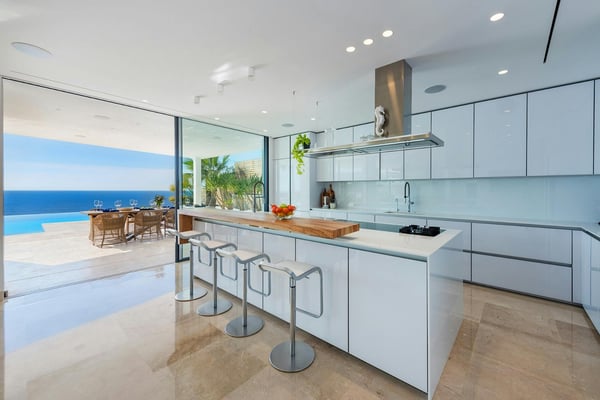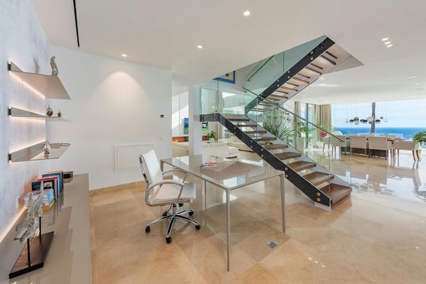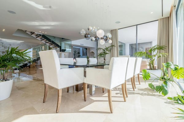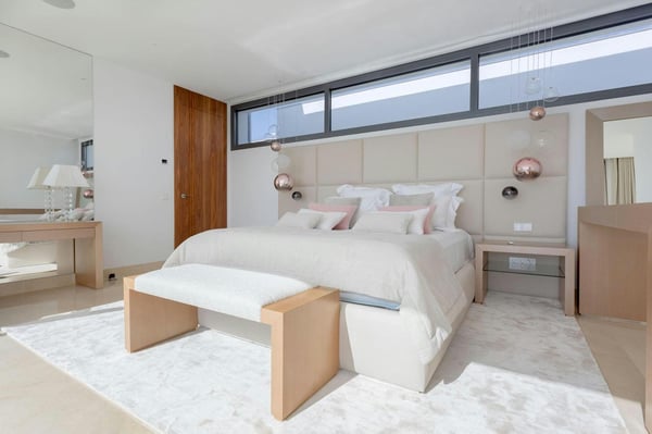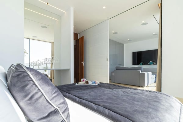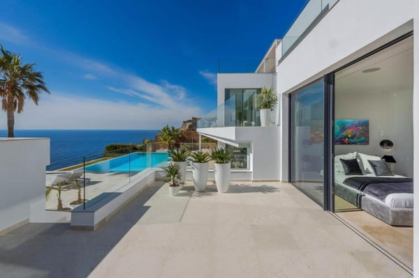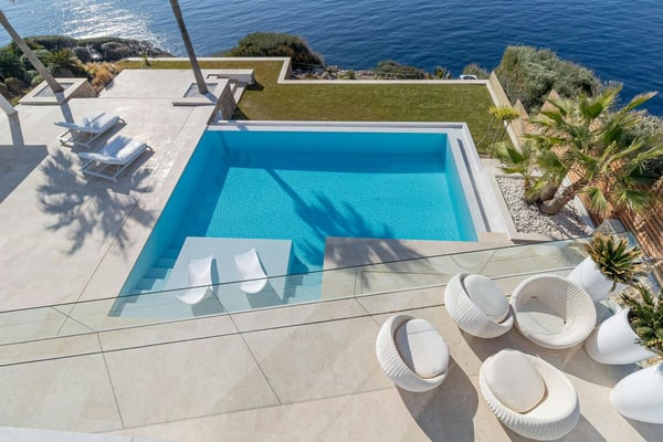 This esteemed residence epitomizes lavishness, perched atop an 80-metre cliff and renowned as a premier destination. Recently renovated in 2023, this deluxe abode offers an unmatched retreat. Positioned on the coveted frontline, La Mola Deluxe presents a sumptuous sanctuary with a sprawling 520 square metres of living space and expansive terraces spanning 350 square metres. Boasting five double bedrooms, each featuring its own en suite bathroom adorned with top-tier linens, and private access to individual terraces, ensuring an indulgent stay. Embark on cinematic journeys within the confines of your private 21:9 home theatre, accommodating up to nine discerning guests. Culinary excellence is effortlessly achieved in the fully equipped professional kitchen, while every corner offers mesmerising views of the Mediterranean Sea and the infinity pool. Exclusivity is paramount, with the villa boasting an independent BBQ area and lounge, an outdoor cinema, and a seamlessly automated system for control. Immerse yourself in the expansive, heated saltwater pool spanning 100 square metres, exuding sophistication in its design. La Mola Deluxe redefines luxury living with its cutting-edge amenities, including intelligent iPad controls for comprehensive household management, allowing guests to personalize floor heating, lighting, and surround sound systems to their preferences. Discover an oasis of serenity, refinement, and unparalleled opulence at this distinguished Mallorcan retreat. Guests can partake in various activities in and around Andratx, such as snorkelling and cycling. Cala Marmassen Beach is a brief 16-minute walk away, while Platja Brismar is located 1.5 miles from the property. The neighbourhood of Puerto de Andratx boasts an enviable position just 5 kilometres from Andratx. Renowned as one of the most enchanting harbours in the Mediterranean, it exudes a quaint charm with its compact yet well-appointed surroundings. While boasting numerous eateries, Puerto de Andratx maintains its essence as a small fishing haven, inviting visitors to unwind at its array of cafes and bars, all the while relishing in scenic vistas. Two petite beaches adorn its coastline, with larger stretches of sand and captivating hiking trails in close proximity. Luxurious spas and a golf course further enhance the allure of this destination. Ideal for indulging in a five-star retreat, visitors can leisurely wander along the waterfront promenade, flanked by upscale boutiques and culinary delights, or embark on a boat excursion to discover the region's exceptionally picturesque shoreline. Getting around is a breeze, with Palma Airport a mere 40-minute drive away, Palma Centre just 35 minutes by car, and Port d'Andratx a short 5-minute drive. Other nearby attractions include the Santa Ponsa beach, reachable in 25 minutes, and the Camp de Mar beach, just a 15-minute drive away. License Number: ETV/5538 / ESFCTU00000703200022864400000000000000000000 ETV 55383