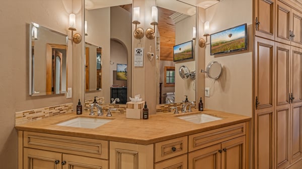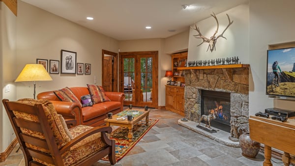 Ski Butlers offers you the best rental experience in the industry. No more lines. Ski Butlers is a full-service ski and snowboard company that delivers the equipment to you. Contact a villa specialist for more information. Life at Cypress Mountain Chalet in the prestigious Highlands of Breckenridge revolves slowly around the pure alpine air, mountain views, and an expression of a quintessential Colorado-style chalet. This elegant western retreat provides a sense of peace with nature with rustic style and uniqueness. A variety of natural designs combined with a touch of European style defines this four-bedroom, 3,500-square-foot home. Cypress Mountain Chalet provides the privacy you are looking for with the convenience of just a 10-minute drive to town and ski gondola parking and just 5 minutes from the Breckenridge Golf course and Nordic Center. The interior of this beautiful home is designed throughout with Cypress heartwood, lending warmth and a welcoming feeling the moment you walk in the door. The great room features floor-to-ceiling windows with mountain views, a comfortable sectional couch, and a stone-feature gas fireplace with seating for all. This unique two-sided fireplace opens to the dining room on the other side, creating the ambiance to make entertaining around the combination bench and chair dining table a memorable experience. A breakfast nook on the opposite side of the kitchen seats another 6 and is perfect for the kids. A warm inviting Colorado kitchen with a European feel features high-end appliances, a beautiful gas range, a wine cooler, and plenty of counter space with a center island and two sinks. Outside, a large upper deck with comfy patio furniture and a grill invites alfresco dining and relaxing in nature in the summer months. On the main level off the dining area is a large private office for remote working with beautiful built-ins, a private bath with a shower, and a high-end sleeper sofa. On the upper level is the primary suite with a TV and a gorgeous ensuite with a freestanding soaking tub, dual vanities, and a walk-in shower. Next door is a family suite with a queen bed and a twin bunk room with a hall bath. Retire to the lower-level family room with its stunning tiled floor and architectural elements including a wet bar with exposed beams, a flat-screen TV and sitting area, and a stone fireplace with couches for relaxing. Head out to the lower patio with a private hot tub and enjoy beautiful landscaping in summer with Colorado native plantings and wildflowers. Guests have use of one bay of the garage with parking for 4 cars total. Enter from the garage to a spacious mudroom for boots, coats, and hats. A washer and dryer and ping pong table are also available. This home is pet-friendly with an additional fee and written approval. Please contact us for details. Regretfully, weddings and events are not permitted in Moving Mountains homes. This home enjoys complimentary shuttle use, from mid-November through mid-April, using the convenient shuttle app to schedule pickups. The use of the shuttle is on a first-come, first-served basis. This property has WIFI and comes fully stocked with paper products (paper towels, toilet paper, tissues), bathroom toiletries (shampoo, conditioner, body wash, hand soap), and detergents (dish, dishwasher, and laundry) as well as clean bed linens and towels. In addition, the kitchens are stocked with aluminum foil, plastic wrap, trash bags, sponges, soap, salt and pepper, coffee, tea, Nespresso, cookware, bakeware, dishes, glasses, utensils, and standard small appliances. This home does not have air conditioning. Colorado's cool summer nights will keep this home comfortable by opening windows after the sun goes down, and then closing the windows and blinds during the day. Utilizing the overhead fans, if available, keeps airflow moving, and additional floor fans can be found in many bedroom closets. Can't live without it? A/C units may be available for rent for an additional fee. Cypress Mountain Chalet Business License: 43427001 3,379 sq. ft.