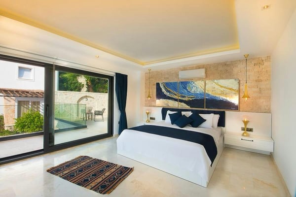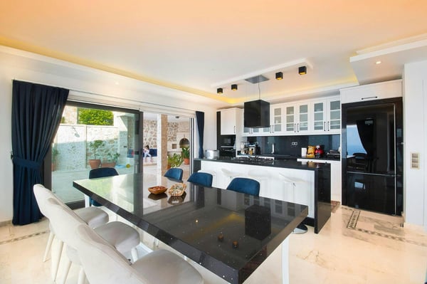 Villa Zehra is an exquisite retreat that combines luxury, comfort, and natural beauty, making it the perfect getaway for groups of up to 10 guests. Nestled in the prestigious area of Kalkan Kömürlük, this stunning villa offers unrivalled views of the sparkling Mediterranean Sea, set against a backdrop of lush natural landscapes. The villa features five spacious bedrooms, each designed with relaxation and privacy in mind. Plush, high-quality beds and premium linens ensure a restful night’s sleep, while every bedroom is complemented by its own stylish en-suite bathroom, complete with modern showers and elegant finishes. Large windows in each room invite plenty of natural light and showcase breathtaking views, allowing you to wake up to paradise each morning. At the heart of the villa, the bright and airy living room offers a serene space to unwind. The cozy seating area is perfect for gathering with loved ones, whether for a movie night or a quiet evening of conversation. Sliding glass doors lead to a generously sized terrace with panoramic sea views, where you can soak up the sun, enjoy a glass of wine as the sun sets, or bask in the romance of the starlit sky. For culinary enthusiasts or those who prefer the flexibility of self-catering, the villa features a fully equipped modern kitchen. With top-of-the-line appliances and all the necessary utensils, preparing meals is both convenient and enjoyable. A stylish dining area provides the perfect setting for sharing delicious meals together, whether indoors or al fresco on the terrace, surrounded by the beauty of the Mediterranean. The outdoor spaces at Villa Zehra are nothing short of spectacular. The expansive terrace offers multiple seating areas, ideal for relaxing in the sun or enjoying the cool sea breeze. The villa's tranquil surroundings create an atmosphere of peace and seclusion, while its prime location ensures easy access to Kalkan’s charming town centre, vibrant dining scene, and lively marina. Whether you’re looking for a serene escape or an adventurous holiday, Villa Zehra promises an unforgettable experience. It’s not just a place to stay—it’s a luxurious sanctuary where cherished memories are made. License Number: 07-2533