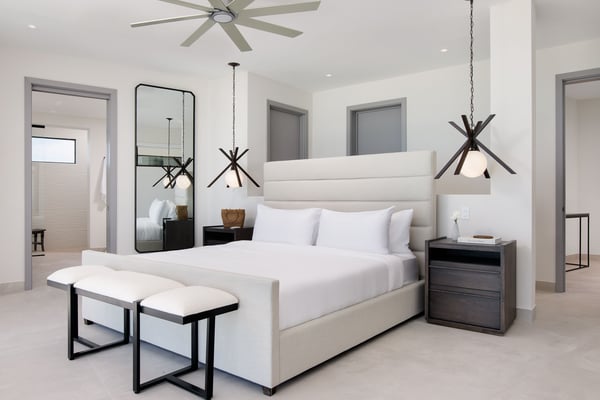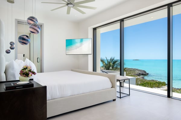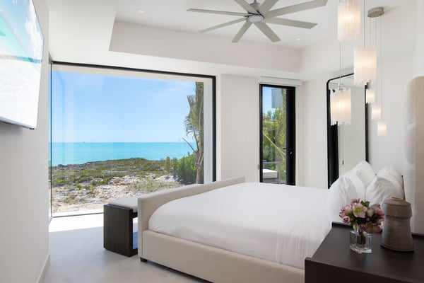 As you step into the grand foyer, you are greeted by an open-concept design that invites the mesmerizing sea views to become an integral part of your stay. Floor-to-ceiling windows adorn the living spaces, allowing natural light to flood the interiors while framing the panoramic ocean. The villa’s sleek design features clean lines, minimalist décor, and a neutral colour palette, creating an atmosphere of tranquillity and sophistication. This two-story haven boasts four meticulously designed bedrooms, each offering unparalleled comfort and style. The two spacious primary suites, with a shared private balcony overlooking the azure waters, provide an intimate sanctuary. The additional two guest rooms on the ground level are equally well-appointed, ensuring every guest enjoys a restful night’s sleep surrounded by opulence. Villa Long Song offers a gourmet kitchen, equipped with state-of-the-art appliances and a large island for culinary enthusiasts. Dine al fresco on the expansive terrace or savour your meals in the elegant dining area, both offering uninterrupted views of the ocean. Afterward, retire to the comfortable lounge area for a nightcap or step out to the infinity pool to witness the sunset casting its golden hues across the horizon. Experience the epitome of luxury living in this contemporary Turks and Caicos oceanfront villa, where every detail is thoughtfully curated to provide an unforgettable escape. Indulge in the fine amenities, revel in the panoramic views, and let the dedicated butler service elevate your stay to new heights. Villa Love Song is a sanctuary where the rhythm of the ocean meets the symphony of luxury living.