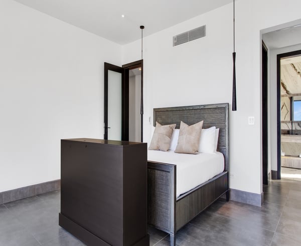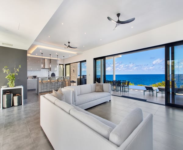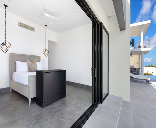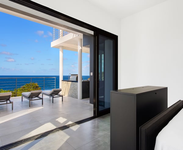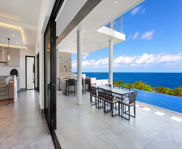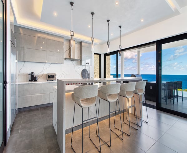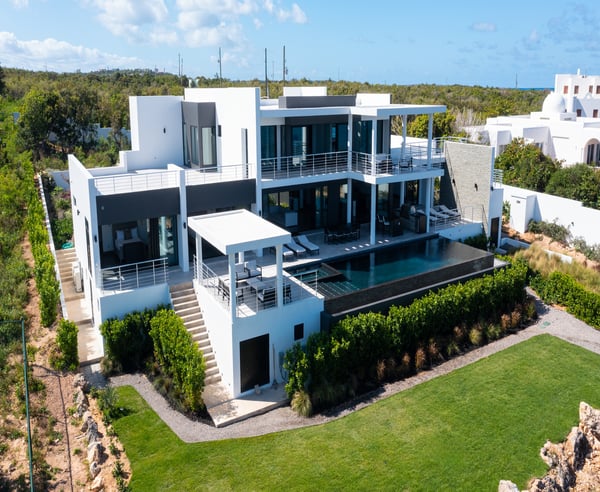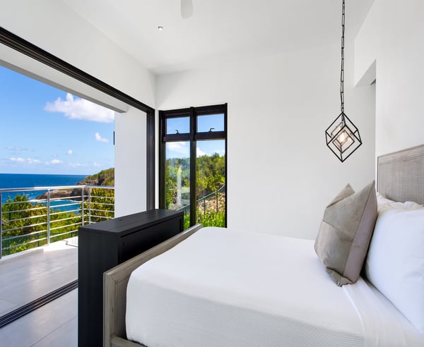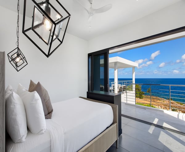 Villa Rêve Bleu is a luxurious modern retreat in Black Garden, Anguilla. Nestled in the serene embrace of Black Garden, villa Rêve Bleu redefines luxury with its sleek modern design and stunning Caribbean surroundings. Black Garden has an expansive landscape that envelops you in splendour and serenity. Secluded from the noise of the world, this is the ultimate relaxing vacation destination. This vacation villa offers a tranquil escape, combining contemporary elegance with the island’s natural beauty. Villa Rêve Bleu's striking exterior harmoniously blends modern architecture with the natural beauty of Anguilla’s Black Garden. The villa stands as a sleek, geometric masterpiece, with clean lines and a sophisticated colour palette of soft neutrals and bold contrasts. Its design enhances the surrounding landscape rather than competing with it, creating a seamless connection to the Caribbean environment. The façade features expansive floor-to-ceiling glass panels, offering glimpses of the luxurious interiors while reflecting the vibrant blues of the ocean and the lush greenery of the garden. The outdoor space is a private oasis, with a stunning infinity pool as its centrepiece, seemingly merging into the deep turquoise waters of the horizon. The pool deck is adorned with chic loungers, inviting relaxation in the tranquil surroundings. The villa’s multiple terraces and balconies provide breathtaking panoramic views of the sea and the untouched beauty of Black Garden. Stunning ocean views, from every room, with majestic coastal cliffs on the horizon, are the ideal natural elements to awake and retire to. Indulge in an exceptional departure from your everyday routine. Rêve Bleu provides unparalleled 5-star service to complement our lavish accommodations. The spacious, inviting living room has large sofas and unobstructed views of the pool and ocean. To the right of the living room is the state-of-the-art modern kitchen. Bedrooms 1 and 2 are on the main floor; they each have queen-size beds and ensuite bathrooms. Bedroom 3 is also on the main floor. This room has a king-sized bed and an ensuite bathroom. The primary bedroom is on the second floor, boasting his and her bathrooms, a kitchenette, and a king-size bed. Whether you’re seeking relaxation, romance, or adventure, this villa promises an unforgettable Caribbean getaway. Rêve Bleu combines modern luxury with the natural beauty of Anguilla; indulge in sun-soaked days, explore the island’s vibrant culture, and savour gourmet meals under the stars. Rêve Bleu is your ultimate Caribbean sanctuary.