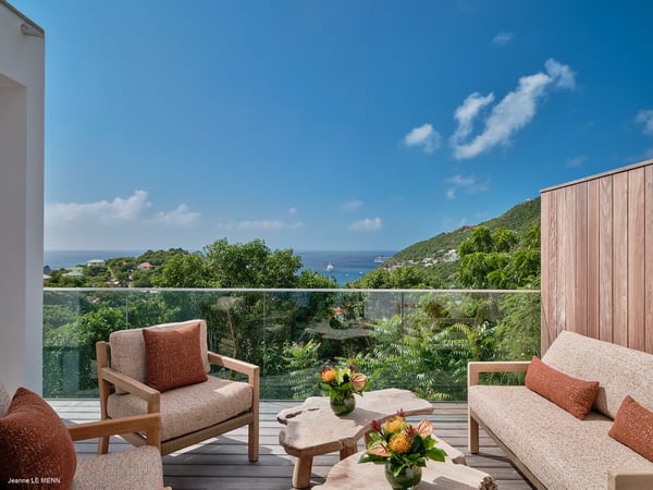 Located in the charming Corossol neighbourhood, just minutes from Gustavia and Saint-Jean, Villa Simona enjoys an ideal location close to the island's beaches, shops, and restaurants. This recently built villa features a bright living and dining area that opens directly onto the terrace and private pool, creating a seamless flow between indoor and outdoor spaces. It offers 3 comfortable bedrooms. Outside, the villa boasts a sun-drenched terrace with a private pool, perfect for relaxing or enjoying meals al fresco while taking in the tropical surroundings. The outdoor space, surrounded by local vegetation, provides both privacy and serenity, highlighting the villa's scenic views. The interior design is elegant and minimalist, dominated by white and wood tones, with high ceilings that bring light and a sense of space to every room. Natural materials and clean lines create an atmosphere that is both warm and contemporary. Villa Simona is ideal for a family or group looking for a peaceful, comfortable, and functional retreat while staying close to the main attractions and lively spots of Saint-Barth.
