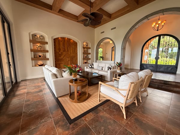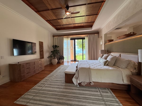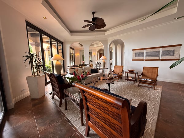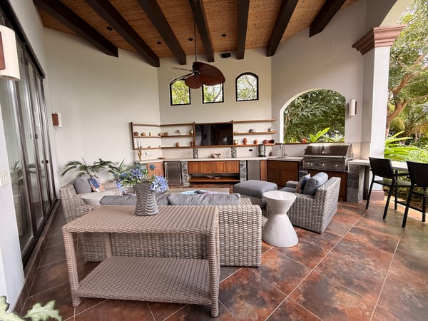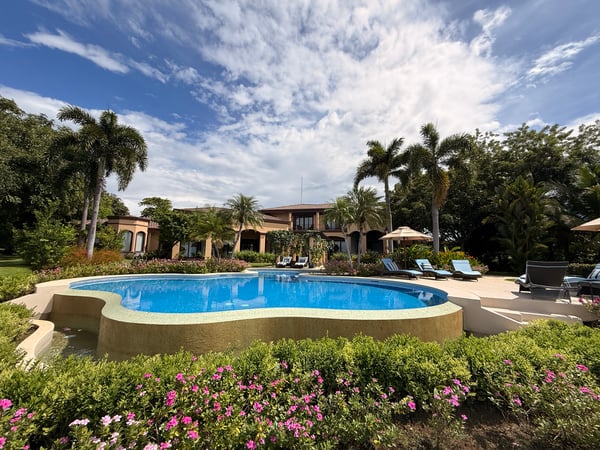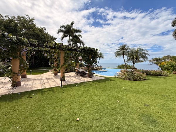 Nestled majestically eighty meters above the crystalline Pacific waters, this extraordinary seven-bedroom, nine-bathroom estate presents an unparalleled opportunity for discerning tenants seeking the epitome of coastal luxury living. This architectural masterpiece commands breathtaking panoramic ocean vistas on one side while overlooking the pristine thirteenth hole of the acclaimed Arnold Palmer Signature golf course on the other, creating a harmonious blend of natural splendor and world-class recreational amenities. The residence features six exquisitely appointed suites, each crowned with sumptuous king-sized accommodations, with two strategically positioned on the main level for effortless accessibility. An enchanting children's sanctuary showcases whimsical multi-bunk bed configurations featuring five queen-sized beds, transforming rest time into an adventure while comfortably accommodating up to twenty guests. Each bedroom sanctuary boasts its own full bathroom and private balcony, ensuring personal retreats with unobstructed views and intimate outdoor spaces. Two additional half bathrooms complement the comprehensive layout, while the residence's positioning within a serene cul-de-sac guarantees absolute privacy and tranquility. The expansive one-acre grounds provide ample space for recreation and relaxation, featuring meticulously maintained flat terrain that enhances the property's usability and aesthetic appeal. The crown jewel of outdoor entertainment manifests in the magnificent infinity pool, where the horizon seamlessly merges with azure waters, creating an illusion of swimming directly into the Pacific. A charming gazebo provides shaded respite, while the dedicated barbecue area transforms outdoor dining into culinary theater against nature's spectacular backdrop. Interior spaces embrace an open-concept philosophy, facilitating seamless flow between the gourmet kitchen, elegant dining area, and sophisticated living room. This thoughtful design promotes effortless entertaining and family gatherings, while the fully equipped kitchen showcases premium appliances that would satisfy even the most discerning culinary enthusiasts. Daily housekeeping services ensure pristine conditions throughout your stay, while comprehensive air conditioning maintains perfect comfort regardless of tropical temperatures. A well-appointed laundry room provides practical convenience, making extended stays effortless and enjoyable. The Peninsula Papagayo location offers proximity to exceptional amenities including the prestigious Prieta Beach Club, the renowned Four Seasons Peninsula Papagayo, and the luxurious Nekajui Peninsula Papagayo Ritz-Carlton Reserve. Marina Papagayo provides world-class boating facilities, while Guanacaste Airport ensures convenient accessibility for international travelers. This remarkable estate represents the perfect convergence of privacy, luxury, and convenience, ideally suited for large groups seeking an unforgettable Costa Rican experience. Whether planning corporate retreats, family reunions, or milestone celebrations, this property delivers an extraordinary setting where memories are crafted against one of the world's most stunning natural backdrops. The combination of sophisticated amenities, breathtaking views, and strategic location creates an unmatched opportunity for those who refuse to compromise on excellence.