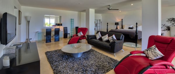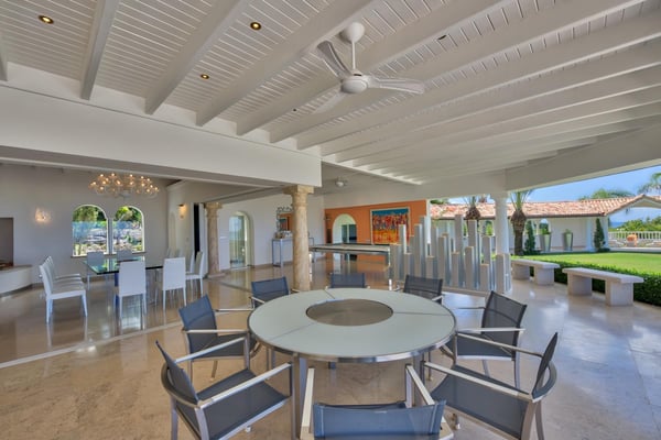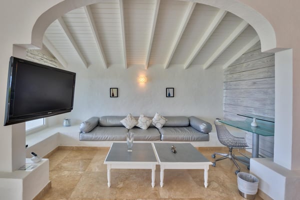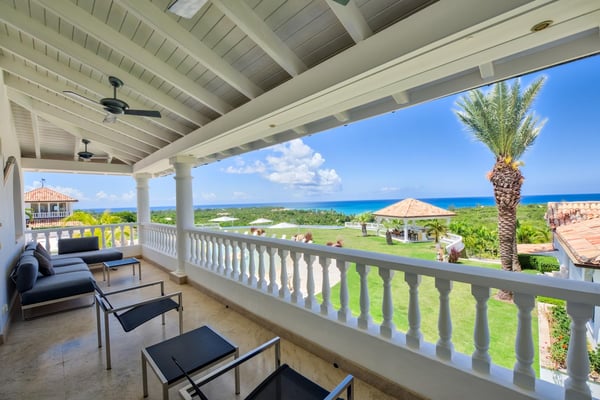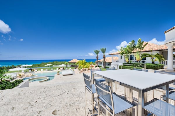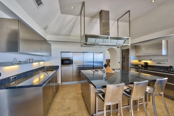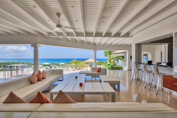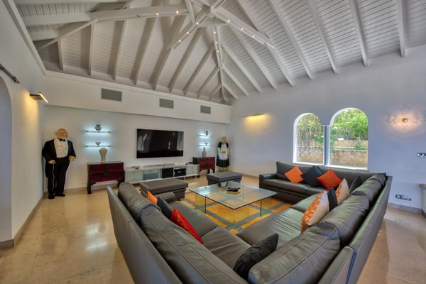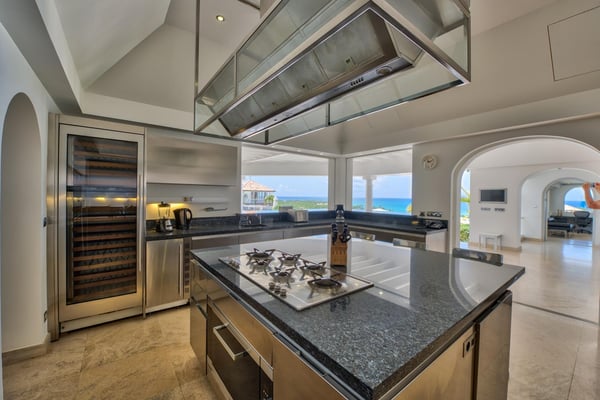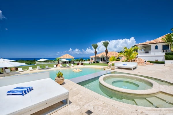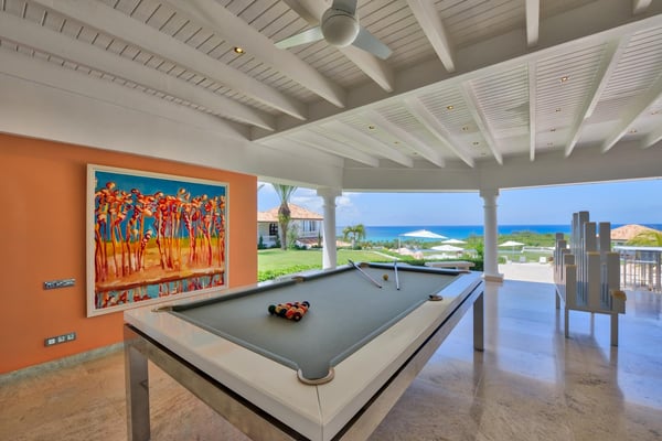 We spent a week at Sandyline with two other families and had a lovely time together! The property is expansive; it appears to be comprised of several large lots cascading down a slightly sloped hill overlooking the ocean. You couldn't choose a better location unless you wanted to be right on the beach! There are two pools at Sandyline; one is sort of a freeform lagoon style pool and the other is a curved infinity pool with gorgeous ocean views. There were quite a few blue mosaic tiles coming loose from the bottom of the infinity pool that cut a few feet but the pool service team seemed to be addressing it during our stay. Both pools were very clean and the water temperature was perfect! There's a hot tub above the lagoon style pool that we really enjoyed using. The temperature was also right on the money and we loved watching the sunset whilst taking a soak! Beware the surface of the hot tub is quite scratchy. It left a hole in one of our guest's bathing suits. We enjoyed using the outdoor covered pool table and spent a few evenings working on puzzles and playing games in the spacious common areas. The ceiling fans were great to mitigate the little flying biters that came out at sunset. Sandyline also has a tennis court on the lower part of the property which we used daily and really enjoyed. It's not a perfect court so some tennis aficionados might be disappointed with the surface. The net was strung well and there is a "clubhouse" with a bathroom and a shady area to sit and watch a match. The court is also lighted for evening use. Having the tennis court was a big plus for us! The gym is nicely equipped and we used it quite a bit. Sandyline is a great Villa for a large group (couples, multiple families or one giant family) as there are several gathering rooms and outdoor spaces to spread out. Our group of 14 had plenty of space and never felt cramped. The bedrooms are spaced out nicely for privacy; the primary bedroom is atop the gym, there are two additional bedrooms in the "main" part of the villa as well as a separate building that houses three more bedrooms. The 7th bedroom is under the infinity pool and was perfect for the older teens in our group. The AC worked great in the bedrooms which made for a restful night's sleep and everyone commented that their beds were very comfortable. The pillows were not great said several of the guests but that's a very personal item and everyone has different requirements. Some of the villa furnishings are a bit dated and appear to have been well used. They were not as nice as we would have expected at a Villa like Sandyline but were definitely usable. Several of the rooms have some interesting LED star lighting in the ceilings & floors which the kids thought was cool. All of the bathroom were clean and there were ample supplies of nice toiletries. The bathroom towels were small and rather thin. We had a great staff at Sandyline! The property's caretaker is Edmund and he is a lovely man. He is very personable and made himself available any time we had questions. The housekeepers, Pamela & Paulina, were very nice ladies and did a terrific job keeping the rooms & common areas neat & tidy at all times. They were also very helpful with laundry! Emanuel rounded out the villa staff and he assisted Pamela & Pauline as well as helping maintain the grounds. Our chef (Alex) & server (Christele) were from a company in Marigot called Fabulous Feasts. Chef Alex is an incredibly talented young man who made us the most delicious meals. They were creative and full of different flavors, colors, and textures. Everyone just loved his creations! Christele is lovely and is very competent & attentive. We never had to ask for anything! There were two people in our group with severe food allergies and both Alex & Christele were exceptionally diligent about making sure there were no issues. Down the hill from Sandyline are two great beaches that are easily accessible by car or foot. Though we visited other beautiful beaches on the island we enjoyed not having to go far with snorkel gear, towels, etc. Overall our stay at Sandyline was great, a 3.5/5 when compared to other similarly priced Villas we've rented recently. The Villa has great bones and so many things that make it a magical place! The overall consensus was that Sandyline would be over the top incredible with an investment in some newer furnishings and some updating of the bathrooms. Returning home to that stunning ocean view and of the sun setting every day after our island activities was just unbelievable!