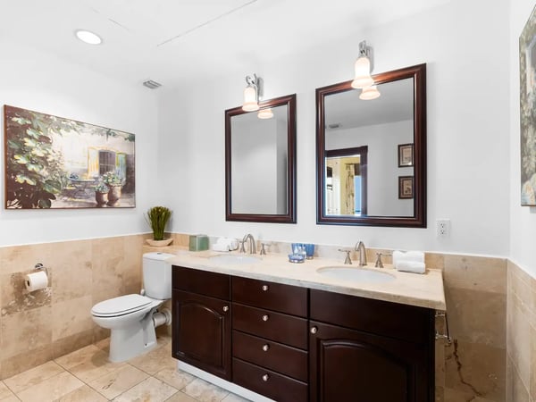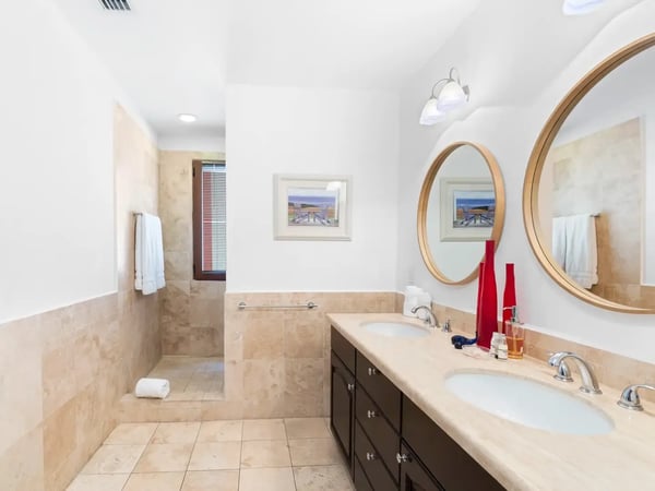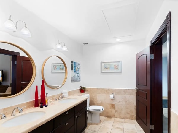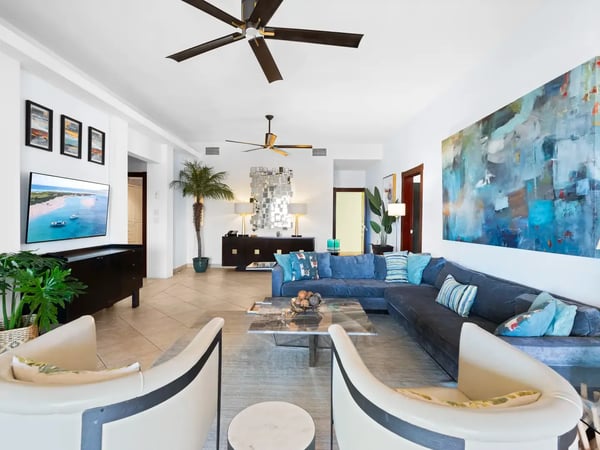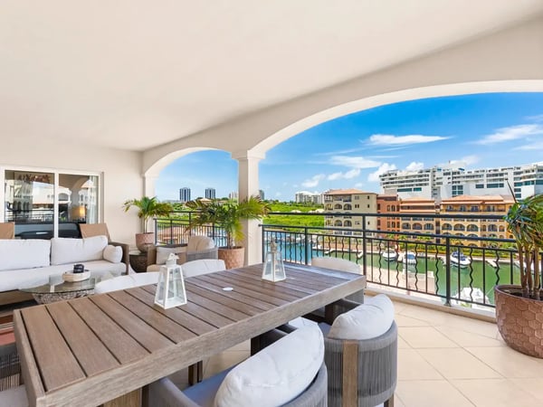 Aqua Vue is a luxurious 2,400 square foot four-bedroom, four-and-a-half-bathroom condo with breathtaking views of the Caribbean Sea, Simpson Bay, and Porto Cupecoy marina. This spacious condo is perfect for friends travelling together, as well as for comfortable family celebrations. You will love the decor, luxuriously furnished and decorated in comfortable neutrals with splashes of color in an upscale design. The open layout of the living area flows to the kitchen and dining area, all enjoy wonderful water views. There is a wonderful dining area to accommodate eight guests. The impeccable kitchen features granite countertops and is equipped with deluxe stainless steel Viking appliances, a triple door refrigerator, stove, oven, microwave, dishwasher, coffee maker, blender, toaster, and a full supply of china, glasses, cooking utensils, crockery, and pots. A series of sliding glass doors lead to a 500-square-foot terrace overlooking the marina, sea, and bay, including an outdoor dining area for al fresco dining, lounge chairs, and a sofa for your enjoyment. Four comfortable and spacious bedrooms offer privacy for everyone, each with an en suite bathroom. The primary bedroom offers a king-size bed, flat-screen cable television, DVD player, big walk-in closet, and en-suite bathroom with an oversized deep soaking marble bathtub, separate marble rain shower, double vanity sinks, and built-in closets. This bedroom also opens directly onto the terrace. The second bedroom offers a king-size bed, television, DVD player, closet space, and en-suite bathroom with a shower, double vanity sinks, and built-in closets. The third bedroom offers a king-size bed, television, DVD player, closet space, and en suite bathroom with a shower, double vanity sinks, and built-in closets. The fourth bedroom offers two double beds, a television, a DVD player, closet space, and an en suite bathroom with a shower, double vanity sinks, and built-in closets. The community is the best on the island! There is a Special 'Lagoon Pool', a state-of-the-art Fitness Center, and 2 Lighted Tennis Courts, all beautifully maintained and available for the exclusive use of Porto Cupecoy residents and guests. The Plaza of Porto Cupecoy with its charming shops and variety of restaurants, plus its Gourmet Grocery and Salon, is just steps from this residence. Plus, it is just a two-minute stroll to Cupecoy Beach and five more of the island's other best beaches, all within less than a ten-minute drive.