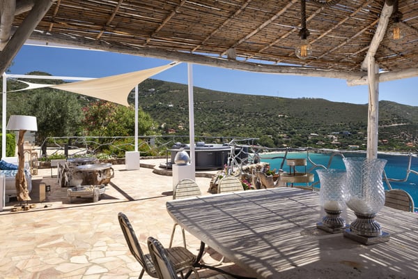 The coastline of Villasimius unfolds in a sequence of turquoise bays, sheltered coves, and stretches of Mediterranean scrub gently descending toward the sea. Pale sandy beaches, crystal-clear waters, and softly rolling hills create one of the most captivating landscapes in Southern Sardinia—perfect for those seeking tranquility, authentic beauty, and a relaxed pace of life. Here, nature reigns with elegance: the scent of myrtle, wind-shaped junipers, and seascapes that shift with the changing light. In one of its most renowned residential areas—distinguished by panoramic villas, quiet surroundings, and a private, refined atmosphere—the landscape alternates between wide-open sea views and small coves reachable within minutes. Essential services, restaurants, and the area’s most celebrated beaches are easily accessible, making this destination ideal for those who wish to balance serenity with convenience. Within this privileged setting stands Villa Ondaléa, a multi-level residence with thirteen bedrooms, located close to the sea and designed in a contemporary Mediterranean style. Perfect for large groups, it offers generous spaces for convivial moments while ensuring privacy, thanks to independent kitchens on each level, two heated pools that allow smaller groups to enjoy separate areas, and a series of pergolas and terraces that invite guests to savor time together in complete comfort. CIN IT092037C2000Q1950