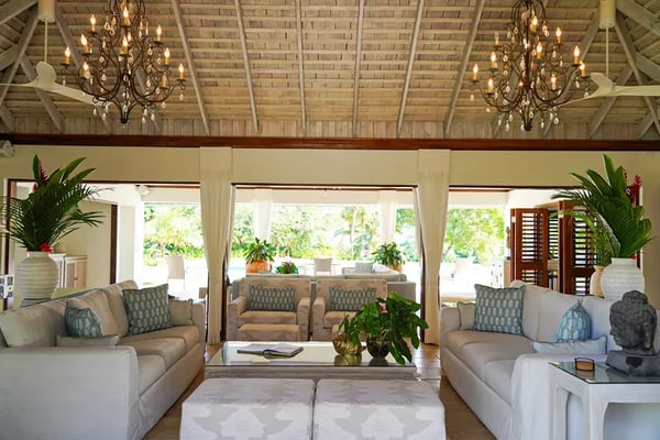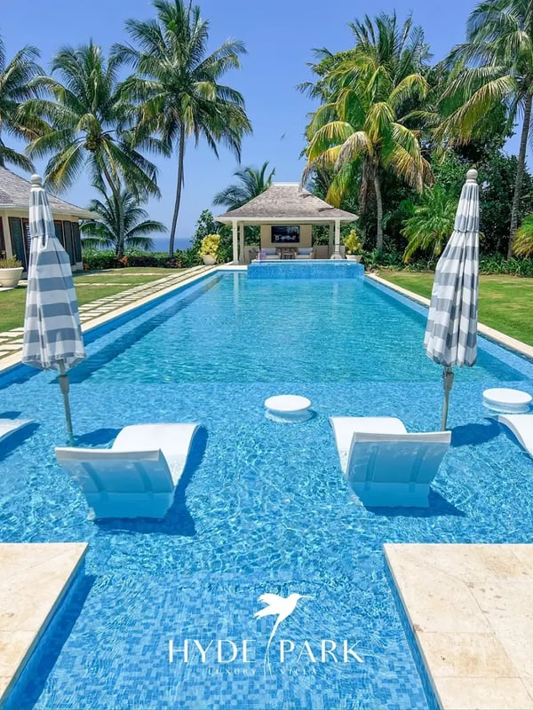 The Tryall Club requires all villa and condo guests to become members during their stay via a Temporary Membership Fee ($) (plus a 15% service charge). Children between the ages of 13 and 15 pay at a discounted rate (plus a 15% service charge). Guests can also pay per day, for guests ages 16 and older, who stay for one to four days. This can be either prepaid or upon arrival at the Club. For children 12 years of age and younger, our Temporary Memberships are complimentary. Please contact a Villa Specialist for exact pricing! With six bedrooms, two private pools, an entire staff, and expertly planned decor, Hyde Park Villa at The Tryall Club is the ideal Jamaican retreat. It’s the perfect spot to relax, enjoy the warmth of the Caribbean, and rekindle relationships with its exclusive, private, and fully equipped facilities. Boasting two stunning heated saltwater pools— a 50-foot lap pool with a 12-foot sun shelf and a second veranda pool— Hyde Park Villa is a dream for families, groups of friends, or corporate retreats. This villa offers ultimate privacy and relaxation and is set on 3.4 acres of lush gardens with breathtaking views of the mountains and sea. In collaboration with the owner, award-winning interior designer Marshall Erb turned Hyde Park Villa into a contemporary yet cozy haven. The home is elegant, cozy, and full of well-considered details. Its open, breezy design blends in perfectly with the Jamaican scenery and seamlessly connects the internal and outdoor spaces. The villa’s private layout includes six pavilions, with rooms like the Magnolia Suite— a two-story space with sweeping views— and the Hibiscus Suite, a 1,900 sq. ft. primary cottage. Guests can enjoy meals in the air-conditioned dining room or dine al fresco by the pool. Located within The Tryall Club, you’ll have access to the world-class golf course, tennis, private beaches, and more, all just a short golf cart ride away.