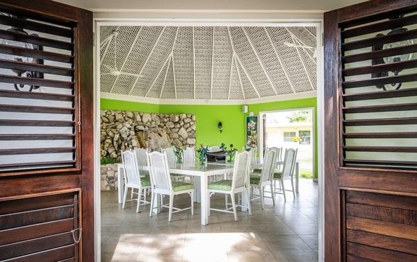 The Tryall Club requires all villa and condo guests to become members during their stay via a Temporary Membership Fee ($) (plus a 15% service charge). Children between the ages of 13 and 15 pay at a discounted rate (plus a 15% service charge). Guests can also pay per day, for guests ages 16 and older, who stay for one to four days. This can be either prepaid or upon arrival at the Club. For children 12 years of age and younger, our Temporary Memberships are complimentary. Please contact a Villa Specialist for exact pricing! Following Seas is a magnificent villa with beautiful gardens, old Hollywood glamour, and stunning ocean views perched on one of Tryall’s highest peaks. This getaway, spread across seven acres of beautifully landscaped grounds, combines the elegance of a cherished family home with top-notch amenities. The villa’s design creates a lively yet peaceful ambiance by bringing the blues of the sky and sea indoors. Large living areas facilitate both social events and private retreats. A Jacuzzi and sun deck provide tranquil escapes, and a covered patio looks out over the infinity pool. With its bar and 80-inch TV, the media cottage is well situated to enjoy sunset views. A beautifully designed dining gazebo seats up to 35 guests, and a cantilevered deck provides mesmerizing rainforest views. The main house hosts four large bedrooms, including a primary suite with dual bathrooms, an outdoor shower, and a dressing area. A separate guest cottage offers two additional bedrooms, a shared sitting area, a private plunge pool, and a sun terrace. All bedrooms include en-suite bathrooms and flat-screen TVs. A fully equipped private gym is housed in a tower with a 360-degree viewing platform. Guests also enjoy access to four golf carts to explore Tryall Club. A dedicated staff of seven ensures a seamless and luxurious stay.