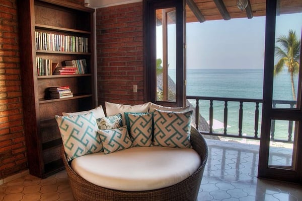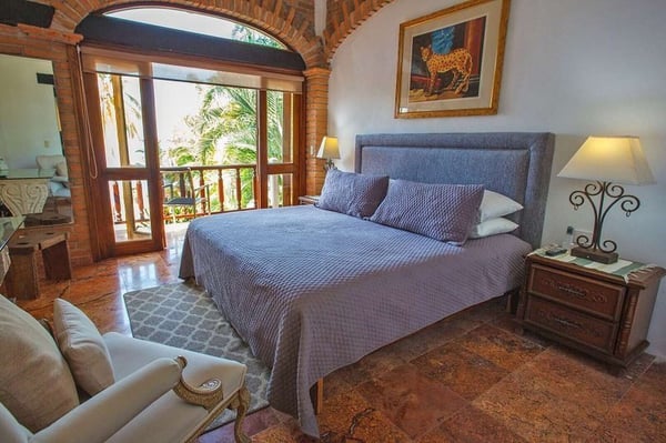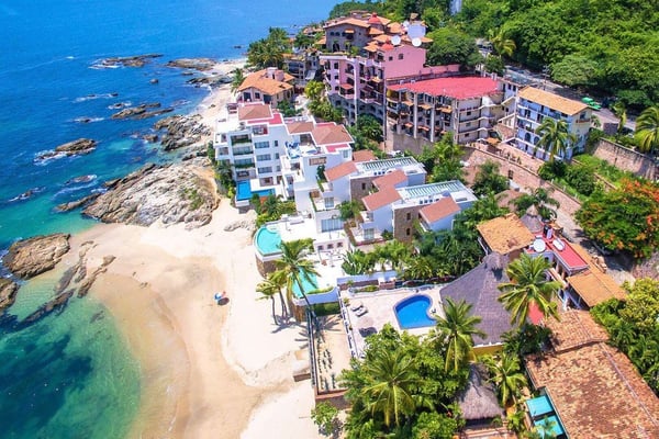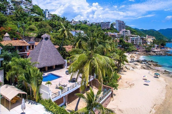 Villa Verde is the ultimate relaxing beachfront escape, set directly on beautiful Conchas Chinas Beach, all just 2 miles south of downtown Puerto Vallarta. This stunning 11,000 sq. ft. villa is designed for effortless indoor–outdoor living, featuring a dramatic open-air living and dining area beneath a soaring Palapa thatched palm roof. Natural stone walls, exposed brick, and classic Puerto Vallarta coastal architecture create a warm, authentic ambiance throughout. The main level flows seamlessly onto a spacious ocean-view terrace with a heated pool, lounge areas, and outdoor dining—perfect for relaxing or entertaining. Step onto one of the best sandy beaches, complete with beach toys for guests to enjoy. Villa Verde offers privacy, space, and timeless beachfront charm for an unforgettable Puerto Vallarta stay. GENERAL SAFETY AND CHILDREN: This is a private villa without a lifeguard (staff are not CPR certified) on duty, the staff are not responsible for watching over any children or adults. Guests must use caution on the property around the pool and jacuzzi areas, on balconies, terraces and rooftops, especially when consuming alcohol. Guests should not leave children unattended, a responsible adult must accompany children at all times, especially near the pool, jacuzzi or the beach. Guests agree to respect safety rules for pools: no running, diving or pushing and no glass or breakable items near the pool. Guests agree to use caution and not lean or hang over railings on balconies, terraces and rooftops. Mexican law does not require a fence or safety net around pools.