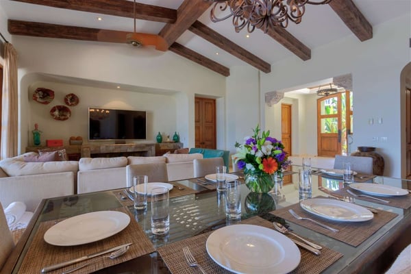 Punta Ballena Beach Club offers breathtaking views of the Sea of Cortez and surrounding coastline. Guests will have access to the resort fitness centre, swimming pool and restaurants. Located in the exclusive development of Punta Ballena, home to the famous auberge Esperanza Resort, Casa Maravillas has a Colonial inspired design, boasting four spacious bedrooms all with en-suite bathrooms. Three of the bedrooms are inside the main house, two of them with ocean views; the fourth bedroom known as the casita has its own entrance and is located in the courtyard. The kitchen, dining room and living room all have ocean views and are perfect for entertaining. The backyard is designed for those seeking shade and sun, chances are you won't want to leave. There is a covered terrace perfect for your afternoon siesta or reading your favorite book as well as an outdoor palapa where you can enjoy your morning coffee or breakfast prepared by one of our chefs. You have your own private heated pool and Jacuzzi as well as a built-in gas barbecue. Come and enjoy this wonderful home that has been outfitted and complimented with services to make your stay an unforgettable one.