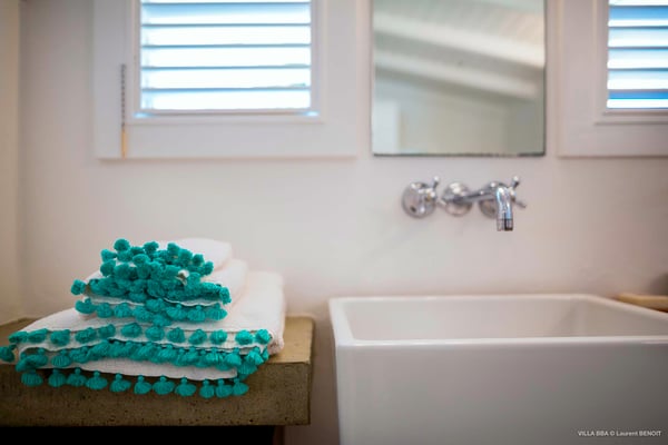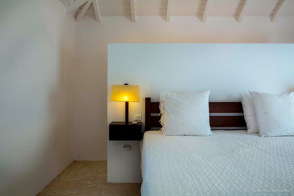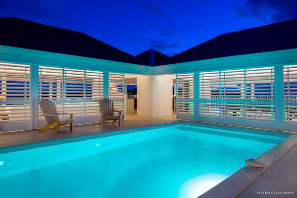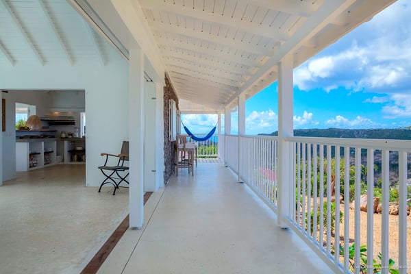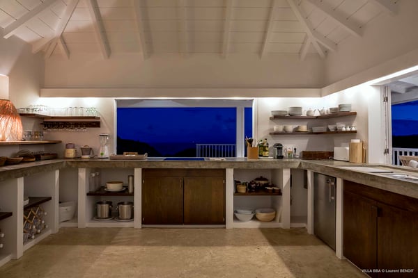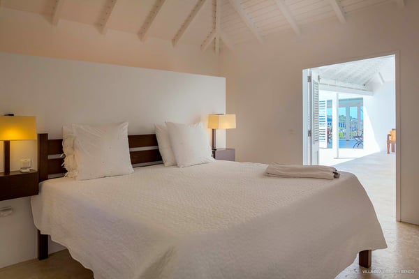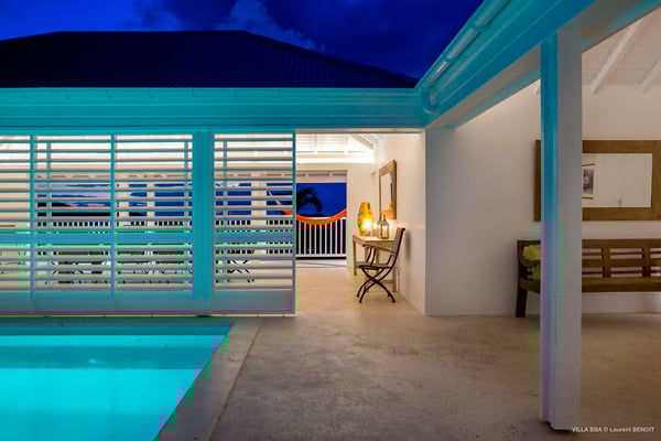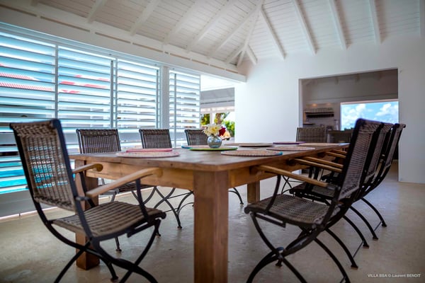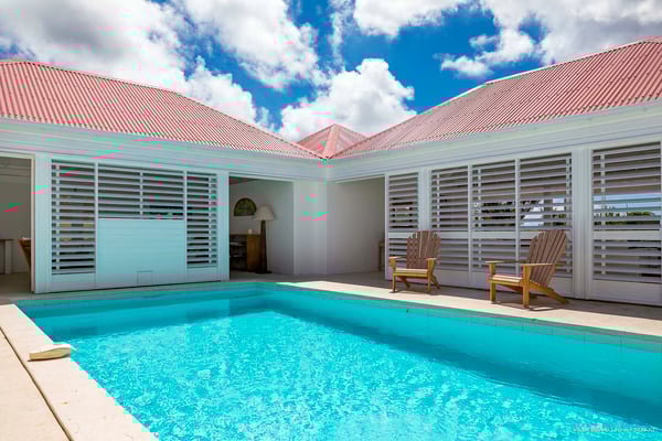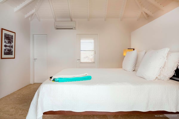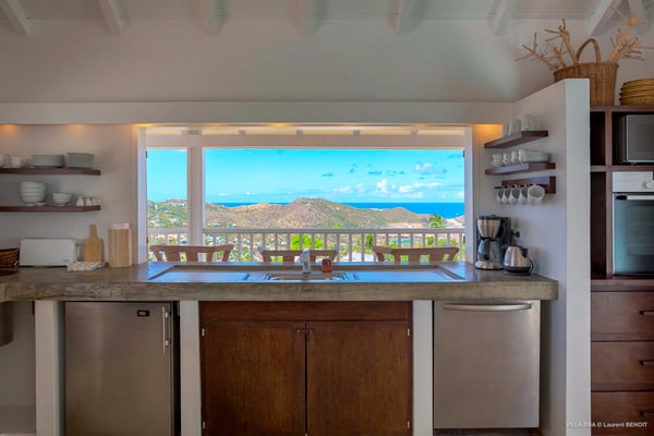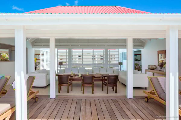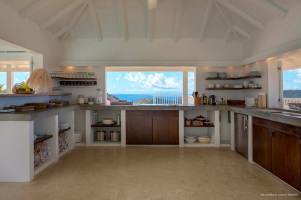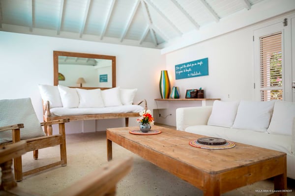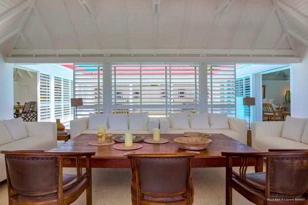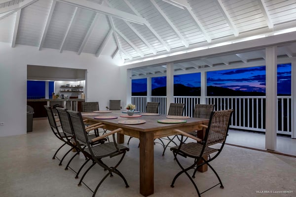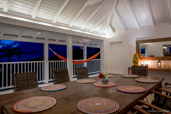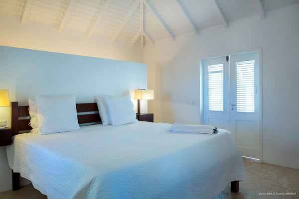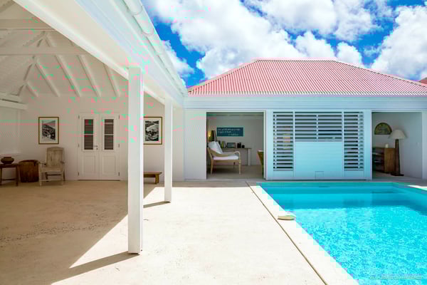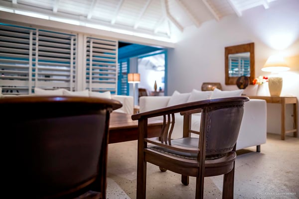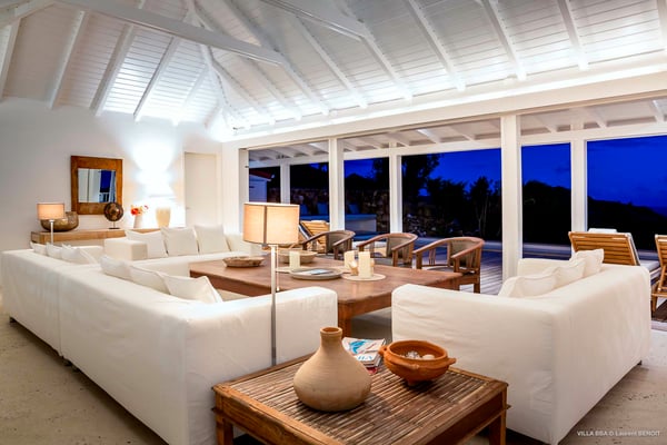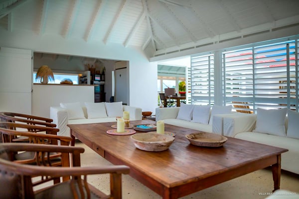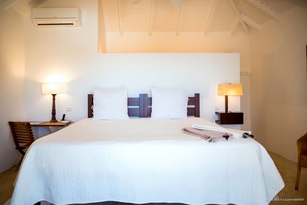 Villa Supersky is a magnificent three-bedroom, two-pool property in an exceptional setting. Ideally located in Saint-Jean in the Cricket area, Supersky offers splendid views over the rolling hills and the deep-blue ocean. Its luxurious amenities and bright spaces make it the perfect place for an unforgettable stay with family or friends in Saint-Barths. Built on one level, the vacation rental Supersky opens onto an outstanding panorama over the Caribbean nature. Designed around a central courtyard with a sparkling pool and bordered by a second, long swimming pool, Supersky welcomes you in a soothing and cozy atmosphere. Opening directly onto the pool terrace at the front and the central terrace at the rear, the lounge features a sofa, armchairs and a coffee table in a soft decor with fine touches of wood. The dining room is on the side of the villa and opens onto both the central pool and a long terrace that also serves the fully-equipped kitchen. On the other side of the villa, you’ll love the TV room where you’ll enjoy pleasant movie nights in a lovely and relaxing setting overlooking the courtyard pool. The front terrace offers a majestic view over the hills and the perfect horizon. You’ll experience delightful swimming sessions in the sparkling pool and sunbathing sessions on the nearby deckchairs. In the tropical breeze, there are hammocks inviting you to marvel at the idyllic scenery. Accessible from the living room, the dining room and the TV lounge, the central terrace features a swimming pool in a very private atmosphere. There is also a covered outdoor area at the rear of the villa, overlooking the pool in a privileged atmosphere. The holiday rental Supersky consists of three air-conditioned bedrooms with en-suite bathrooms located at the corners of the property for utmost privacy. Spacious and bright with a beige decor, they open onto St-Barths nature, with bedroom 1 onto the terrace. There are mirrors, TVs and comfortable fabrics in the bedrooms, the best place to relax after great days exploring the island's treasures. Set in St-Jean’s beautiful surroundings, Villa Supersky is the perfect place for a fantastic vacation in St-Barths.
