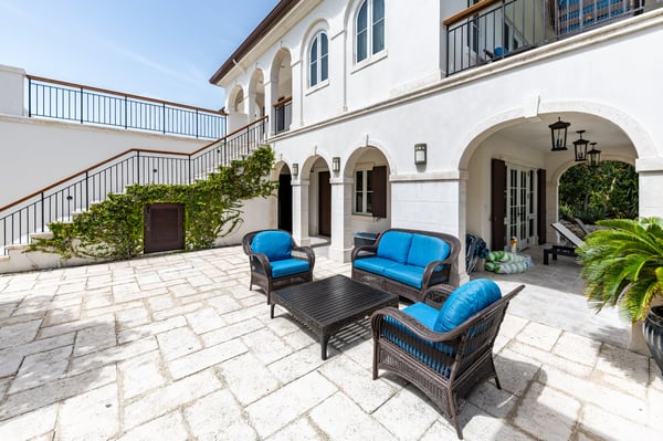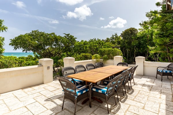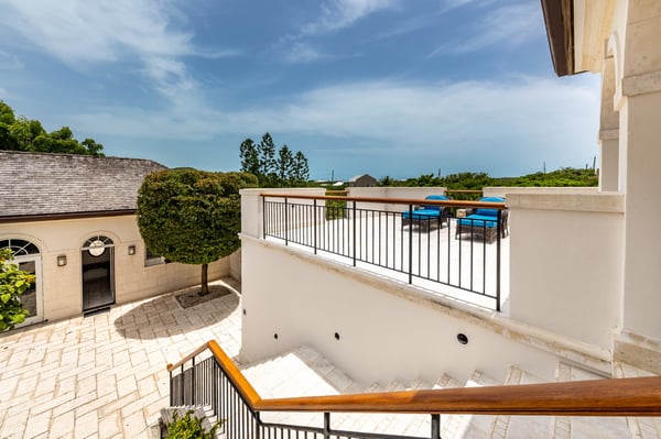 Casa Barana is a superb, modern Tuscan-style beachfront six-bedroom villa located in the private gated community of Thompsons Cove, directly on 135 feet of tranquil, oceanfront paradise. The west wing consists of five large en-suite bedrooms. The spacious upstairs master suite has a bar sink, refrigerator and a patio with an outstanding ocean view. Adjacent to the master is a large bedroom with two twin beds (also convertible to a king), perfect for kids. Enjoy the peace and serenity of the huge upstairs deck area overlooking the beach as well as the entire property. The three bedrooms on the main level each have their own entrance, beautiful en suite bathrooms and patios. The Villa's East wing consists of an en suite bedroom, a high-end kitchen, a gorgeous dining room and great room, a half bath, and a laundry room off the kitchen with a back door leading to a luxurious outdoor shower. Each bedroom has a satellite television. The huge great room offers more than enough space for the entire family to gather together for drinks or to watch television. The large outdoor courtyard area has multiple seating options for families to gather and enjoy the warm sunshine by the pool and Jacuzzi or a casual barbecue at the end of the day. With lush gardens and a multitude of fruit trees, the private property is surrounded by almost two acres of lovely grounds. Enjoy lazing by the ocean on the beachfront patio. Play with the numerous beach toys or take a kayak out and discover the tranquillity of the nearby cove. Go snorkelling and see a multitude of sea creatures right outside your doorstep. Situated close by, only a ten-minute walk down the beach, is the world-famous Da Conch Shack and Kalookis restaurants. Only a short walk from dining and entertainment! After a full day, be sure to catch the sun's finale as it sinks into the horizon of the beautiful turquoise sea!