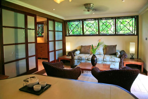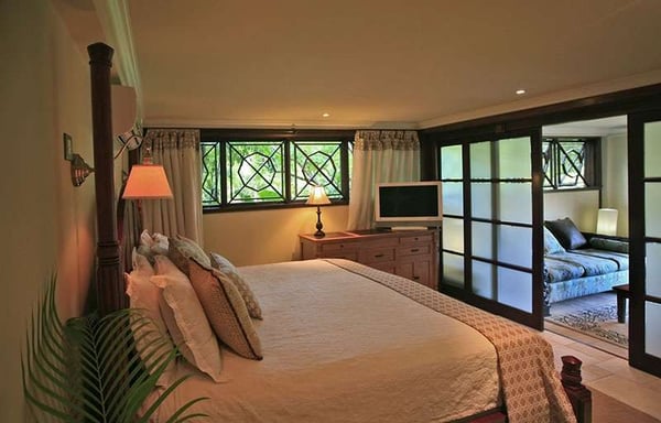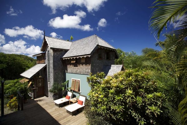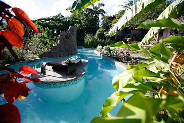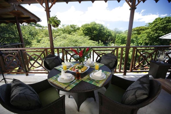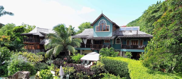 Welcome to C'est la Vie, a serene sanctuary tucked away on the picturesque Trouya Pointe Peninsula in St. Lucia. This stunning villa offers the perfect blend of privacy, peace, and tranquillity, with only the sounds of birdsong and the gentle crash of waves to interrupt the quiet. Surrounded by lush, landscaped gardens brimming with vibrant yellow, red, pink, and gold blooms, C'est la Vie is an idyllic retreat. The villa’s main house, adjoining cottage, and apartment masterfully combine traditional Caribbean charm with the serene elegance of Balinese design. The result is a truly unique space, where every detail invites relaxation. With a full-service villa team at your disposal, you’ll feel as though you’ve checked into your own private boutique hotel, where every need is met with grace and professionalism. Start each day in paradise on the upper veranda, where a cozy lounge set and a breakfast table offer the perfect spot to take in the views. From the elegant curved eaves to the carved hardwood railings, your eyes will wander across an endless sea of lush greenery. Enjoy a morning dip in the pool, complete with a waterfall to refresh you, then relax on a chaise longue or a nearby daybed. For the ultimate outdoor experience, rinse off in the outdoor shower before gathering your guests at the Banana Bar or firing up the barbecue. There are multiple living rooms throughout the villa, each offering plush sofas, designer fabrics, and antique wooden furnishings. Light pours through attractive louver windows, creating a warm, inviting atmosphere. Share meals together in the dining area or one of the al fresco tables. Should you desire a special culinary experience, a professional chef is available to create gourmet meals tailored to your taste. C’est la Vie features five exquisitely designed bedrooms, each inspired by a local tree and adorned with luxurious fabrics, soft linens, and tasteful, exotic furnishings. Three of the bedrooms are located in the main house, each with its own private veranda, en-suite bathroom (with walk-in shower), and air conditioning. The fourth bedroom is located in the separate cottage, which also includes an en-suite bathroom, private veranda, and a study. The final bedroom is in a charming apartment at pool level, where you’ll find a handmade soak tub in the en-suite. Just a short stroll from the villa, you’ll discover a tranquil, secluded cove, perfect for snorkelers to explore vibrant reef fish or lobster. Adventurous swimmers can circumnavigate the peninsula to find another quiet cove with a pristine sandy beach. Both coves are ideal spots for a picnic or barbecue, providing an added touch of natural beauty to your stay.
