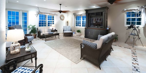 Welcome to Our Cayman Cottage! A private retreat, hidden in the East End along the reef-protected coast, this stunning home features elevated ocean views and luxurious resort-like amenities. Spanning 6,500-square feet across four floors, Our Cayman Cottage is the perfect family vacation home. Guests can take a dip in the oceanfront pool and spa, enjoy alfresco meals with a view on the balcony, or retreat to the lower-level game room for hours of fun. The game room comes equipped with two retro arcade games, plus a shuffleboard table and pool table. There's also a full-service bar complete with a small fridge, ice maker, wine cooler, and kegerator - contact us two weeks before arrival to arrange a keg! A large TV den rounds out the lower level, with French doors providing walk-out access to the villa's pool deck. The center point of the villa, this fabulous oceanfront pool deck comes complete with an infinity pool and a submerged heated spa. Savor the elevated ocean views as you cool off in the infinity pool. Sun loungers are placed on opposite ends of the pool for sunbathers to enjoy. LED lighting illuminates the water in the evening hours. Steps down from the pool deck is a secluded sandy beachfront accessible via a private stairway. The protected reefs behind the home provide guests an opportunity for exceptional snorkeling expeditions and kayaking adventures. Two complimentary kayaks and three bicycles are provided for guests to enjoy during their stay*. The water here is rarely snorkeled meaning guests often see exotic marine life such as spotted eagle rays and larger schools of juvenile fish. With very little current, this is a great and safe area for children to snorkel in. After a long day of vacation fun, guests can retreat to one of the villa's six bedrooms spread out across four floors. Beach Notes The beach behind Our Cayman Cottage is both pebbly and sandy. The beach is also reef protected which creates a marine environment of corals and grasses for all our marine life to live in. We encourage you to wear water shoes or swim fins for foot protection when in the water. The snorkeling here is superb, as there are a very limited number of snorkelers in the water to startle the turtles, rays, tarpon, grouper, juvenile schools, lobster and conch that roam the ocean floor. We often see eagle rays swimming by from the pool deck, as well as lines of squid out near the reef. The kayaks are provided to help our guests get out to the best snorkeling spots on the island. We are also one mile from the two largest resorts in the east end. Only a 10-minute walk away, both resorts are open to the public with restaurants, bars, daily entertainment, and watersports. General Grand Cayman Beach Notes All beaches in Grand Cayman are technically “public” since the Queen owns up to the high watermark and the shoreline quality behind your property may vary seasonally. Be advised that the beach or water entry behind your property may vary slightly from the images on our website because of the weather. The next-door beach is also always available for your use. Ocean Debris and Sargassum Seaweed Beaches in Grand Cayman may also experience floating ocean debris and sargassum weed seasonally. Sargassum is a generally harmless floating seaweed that has increased in frequency in recent years. Although sargassum is an unsightly nuisance, it is largely seasonal in summer. The owners do make efforts to remove heavy sargassum and will have the beach raked prior to your arrival. We try our best to work around mother nature.