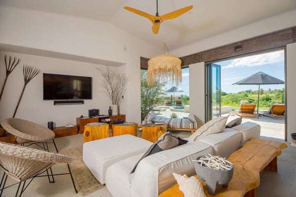 Casa Naah Payil Villa is situated in one of Los Cabos most upscale neighborhoods, Cabo del Sol, which offers all the conveniences a place could provide. Unwind in the luxurious surroundings of Naah Payil, a remarkable villa located in the prestigious Cabo del Sol community. With its minimalistic design and calming tones, this retreat offers the perfect blend of privacy and comfort for an unforgettable vacation. This villa features 5 bedrooms and 5 bathrooms, accommodating up to 12 guests. Spend your days soaking in the heated pool, enjoying the gentle ocean breeze and stunning views of the Sea of Cortez on one side and lush golf course greens on the other. Evenings invite you to relax by the fire pit, lounge under the stars, or share laughter with loved ones in the outdoor living spaces. Inside, the villa is equally impressive, boasting a wine fridge, a modern sound system, and an elegant formal dining area. The fully equipped kitchen, combined with chef-prepared breakfasts and lunches (ingredients not included), ensures every meal is a memorable experience. Located near world-class golf courses, pristine beaches, and vibrant Cabo nightlife, Naah Payil is the ideal destination for families or groups seeking serenity and sophistication. Book your stay and immerse yourself in the luxury and breathtaking beauty of Cabo del Sol.