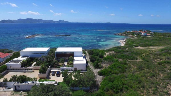 Beaches Edge Anguilla villa rental offers a modern, minimalist aesthetic capable of seamlessly integrating sleek architectural elements with the natural beauty of its surroundings. Stretching across a vast property, this luxurious retreat offers a harmonious combination of indoor and outdoor spaces, providing access to a private beach, a well-equipped gym, and the convenience of daily housekeeping services. As you approach the villa, a tranquil private garden awaits to welcome you. A stone pathway guides you over a serene water mirror, leading you to the majestic entrance. Here, you will find tall glass double doors that immediately set the tone for the elegance. Upon entering, there is an expansive living room with floor-to-ceiling windows that flood the space with natural light. The room offers uninterrupted views of the Caribbean Sea directly in front and the lush garden behind. The open-concept living area is a masterpiece of modern design, with contemporary furnishings that perfectly complement the villa's unique architectural style. This villa is distinguished among others in Anguilla by its elegant formal dining table, strategically located at one end of the living space. Situated near the kitchen, this area not only provides the perfect place to share meals but also offers breathtaking ocean views, making every dining experience memorable. The kitchen, separated from the living room by a Kabukali wood accent wall, is a chef's dream. It features professional-grade stainless steel appliances, a sleek breakfast bar, and a modern European design that is both functional and aesthetically pleasing. Adjacent to the kitchen is a cozy media room equipped with high-speed internet, a large TV, and comfortable seating, ideal for relaxing or entertaining. Just off the kitchen, a covered outdoor dining area awaits, ideal for enjoying meals while listening to the soothing sounds of the waves and feeling the gentle sea breeze. A nearby built-in outdoor grill adds convenience, making it easy to enjoy alfresco dining. The villa's spacious terrace offers panoramic views of the azure waters of the Caribbean Sea, with the island of St. Martin visible in the distance. This outdoor space is further enriched by an inviting pool and a separate Jacuzzi, both perfectly integrated into the villa's design. Just steps away, the sea invites you to explore, with an outdoor shower conveniently located to rinse off after a day of sun and sand. On the second floor, the villa features two primary suites and two additional guest bedrooms, all meticulously designed to provide a luxurious and comfortable stay. The primary suites are particularly impressive, with one offering a private balcony, a perfect place to enjoy the warmth of the sun and the tranquility of the surroundings. Both suites feature spacious walk-in closets and elegant bathrooms, ensuring a private retreat within the villa. The fifth bedroom on the first floor offers the same level of comfort and style, although it is the only room without ocean views. For those traveling in large groups, the villa can be combined with its twin, conveniently located next door, offering even more space and privacy. Beaches Edge in Lockrum, in addition to providing a private sanctuary, is also conveniently close to some of the island's best beaches and restaurants, ensuring that your stay is both relaxing and full of unforgettable experiences.