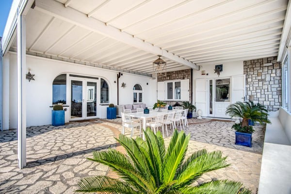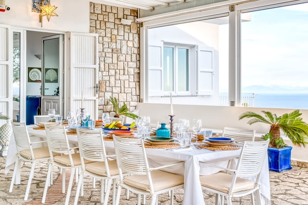 Elegantly sprawled on the hills on the south coast of the Sorrentino Peninsula, Aldana offers spectacular views of the Mediterranean sea. The villa is set in a private location, the ultimate luxury on the Amalfi Coast. With its relaxed and yet sophisticated ambiance where contemporary decor is mixed with few traditional pieces, this villa earns the highest reviews from the guests who stayed there. This property is characterized by spacious rooms and luxury amenities paired with a beautiful manicured extensive terraced garden, and a stunning panoramic infinity pool. Begin your day saluting the sun on the lawn and then end it enjoying the villa's whirlpool with the moon as your only audience. Fill in the remaining time with your favorite local activities. This will be the best vacation you will ever have!