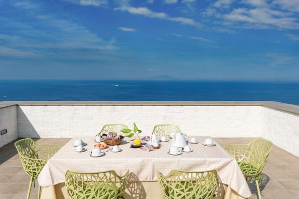 Villa Bonsanti is located in the village Marciano just 2 km from Massa Lubrense in the center of the Sorrento Peninsula, directly be the sea. Due to its strategic location, the village whose name derives from that of a Roman family that once owened the property, offers beautiful views of the island of Capri, to the bay of Naples and of Mount Vesuvius at a distance. Approximetly 100 feet above sea level, the village stretches on the western slope of the Tower of Termini, between S.Lorenzo and Bacoli. This area is a natural paradise; the marine protected area of Punta Campanella prevents access from the bay Jeranto to all boats. Small boats are available for rent at the port of Massa Lubrense (ask our concierge team for more information), an area suitable for a variety of types of production: sublime olive oil, fresh fruit, grapefruit, cheeses, and a variety of dairy products.