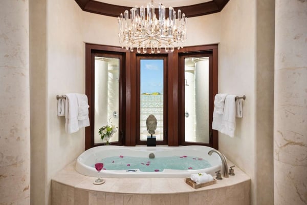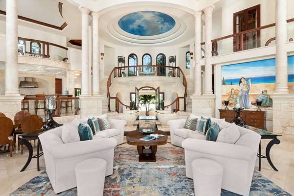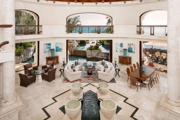 This 30,000-square-foot private island estate is without a doubt the most impressive property in the Turks & Caicos Islands. The surrounding Chalk Sound National Park and Frenchman's Creek Nature Reserve offer an array of activities such as kayaking and paddle boarding as well as many hidden beaches and cays to discover. The Emerald Cay is a tropical hideaway that combines pristine natural beauty with state-of-the-art technology. The property is located on a two-plus-acre private man-made island in the exclusive and scenic Silly Creek, Chalk Sound region of Providenciales. Accessed by a one-of-a-kind remote-controlled swing bridge and a Turkish marble driveway, the estate is surrounded by turquoise water with breathtaking views of the Caicos banks, the Chalk Sound National Park and the rugged coast of the Frenchman's Creek Nature Reserve. The estate was designed with majestic architecture, exquisite finishes and phenomenal attention to detail. This luxurious mansion includes a detached two-level primary bedroom, three guest suites, a two-bedroom boat house and a two-bedroom guest house. A Crestron system automates virtually everything in the residence, including the lighting, air conditioning and audio. The primary bedroom is a two-level detached structure with unparalleled views, a spacious bath with indoor and outdoor showers, a walk-in closet and an upstairs workspace. The indoor and outdoor sitting areas deliver an additional level of privacy. The boathouse is a private two-bedroom guest home with a living area, kitchen and balcony. The guest villa is a stand-alone residence offering a bit of isolation from the main house. The home offers two bedrooms, a living area and a kitchen. The private balcony and sitting areas offer amazing views of Chalk Sound and Silly Creek. The three-story library, known as a 'million-dollar room' built with mahogany panelling and a hardwood helical staircase, offers a one-of-a-kind private workspace and sitting area. The third-floor cocktail lounge and sitting area provide magnificent views of Chalk Sound and Silly Creek. The list of amenities at the Emerald Cay is extensive. An onsite state-of-the-art fitness center that can surely claim to have one of the finest views in the country, two adjacent free-form pools with a waterfall and spa, a 6,000 bottle wine cellar, ten-seat movie theatre, full-size tennis court, sand volleyball court, barbecue pavilion, beach and ocean access on every side of the cay and an interior lagoon that offers a private sheltered beach and swimming area. The Emerald Cay is undoubtedly one of the most impressive properties in the Turks & Caicos Islands, if not the entire Caribbean.