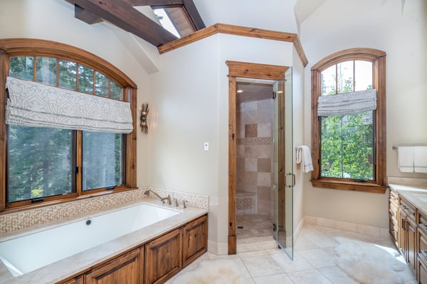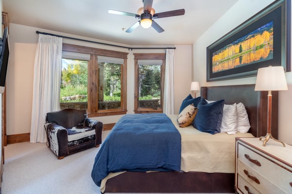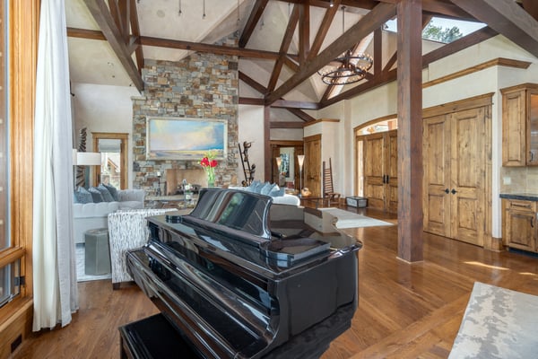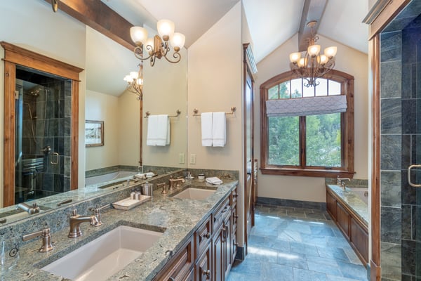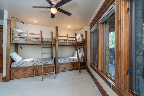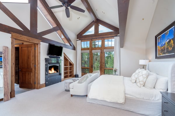 Come experience a serene mountain getaway at this upscale private residence that is surrounded by trees and boasts a big yard for plenty of room to roam and play. It's beautifully furnished and decorated throughout and comes with all of the amenities and services that you could possibly want, and there's room for 12 individuals along with the family dog if approved. The Pinnacle is absolutely divine with its wood and stone exterior, and it offers five bedrooms and 5.5 baths perfectly placed across two levels and a full 6,800 square feet of modern living space. Guests may enjoy walk to ski access during the winter season and be close to biking and hiking trails in the warmer months. Large windows frame the gorgeous wooded views outside, and you might just see a few elk or deer passing by. In the living room, a large coffee table is surrounded by two plush sofas and other comfortable seating options, and a big stone fireplace warms the entire area. There's also a piano where creative guests may enjoy entertaining the group. Next is a rectangular dining table with seating for 10 and a wonderful view to enjoy during your meal. The Pinnacle features a gourmet kitchen that any cooking enthusiast would adore, and you may request the services of a private chef during your stay. Dinners are a breeze thanks to the dual ovens and 8-burner stove top. There's a large breakfast bar with seating for four, an abundance of cabinet space and a huge pantry that we can have stocked for you before your scheduled arrival. A king-size bed and a cozy seating area are both warmed by a stone fireplace in the primary bedroom, and the private bath features his-and-hers closets and his-and-hers sinks along with a separate tub and shower. The secondary suite also features a king-size bed and a fireplace, and you can watch television from the comfort of the bed if you wish. This bedroom comes with a private bath with dual sinks, a tub and a separate shower, and bonus features include a private office space just a few steps up from the bedroom and two private terraces located on separate sides of the room with pretty nature views. Two of the guest suites come with a king-size bed and an en-suite bath. The final guest room is a bunk room that provides the perfect space for children, teens or singles, and it is served by a private bath. It has four twin-size bunks, and each has its own attached reading light. Those visiting with young children may request the services of a qualified nanny. TMV BL# 007680