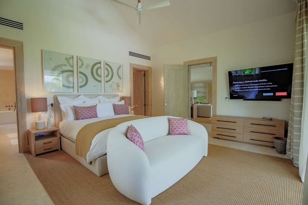 Guests staying within Puntacana Resort & Club will have access to all resort amenities and facilities. Resort amenities and facilities include two golf courses ($), two beach clubs ($), Six Senses Spa ($), restaurants ($), bars ($) and tennis centre ($). Surrounded by golf courses and green meadows, this property offers a tranquil and relaxing stay in any of its six bedrooms, coupled with each with its own en-suite bathroom. The master bedroom, located on the second floor has a king bed and on the same floor, there are three other bedrooms, one with two full-size beds and the second one is the second master bedroom with a king bed and also a kid's room with two twin bunk beds. On the ground floor, you will find two other bedrooms, one with one full bed and the next one with two full. All rooms include air conditioning and TV's with international cable channels. Fully equipped kitchen, extensive living room terrace, and dining room, external dining area, and swimming pool to cool off.
