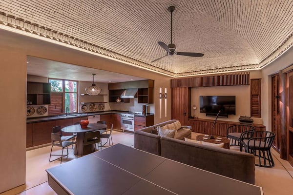 The Premier Golf Membership grants access to Pacifico Golf Course ($), Bahia Golf Course ($), the tennis centre ($), the fitness centre ($), the Residents' Beach Club and Kupuri Beach Club. Contact a Rental Escapes reservations manager for more information. Exclusive and Private luxury villa located inside the exclusive Ranchos Estate development of Punta Mita on the Riviera Nayarit. Casa Tau is a unique oceanfront estate created by two of the most world-renowned architects Manolo Mestre & Juan Collignon. The result of their enduring collaboration is a space that's simultaneously whimsical and timeless. Enjoy a day spent by your own private infinity pool. The pool is heated to your desired temperature no matter the season. If you want to enjoy some bubbles just hop into the Jacuzzi and enjoy the uninterrupted views of the ocean with a cocktail in the hand. Doubling as the main dining area, the main palapa is an architectural marvel all in itself. With its grand parotta wood pillars, you marvel as you relax under its shade, and enjoy the warm Nayarit breeze. Your very own private beach, just a couple steps away. This beach is family safe and truly a swimmable beach with soft sand and warm water. This cozy area is also where a lot of the exciting night activities take place, including a bon fire every night, dining location with your toes in the soft san, fire dancing, fireworks and a whole lot of great experiences. Enjoy an interactive dining experience on the kitchen terrace, while the Chef prepares custom pizzas to your liking. You can choose any topping and as many toppings as you want. This location is also great for breakfast if you want to view the kitchen in action while preparing your spectacular and authentic dishes.