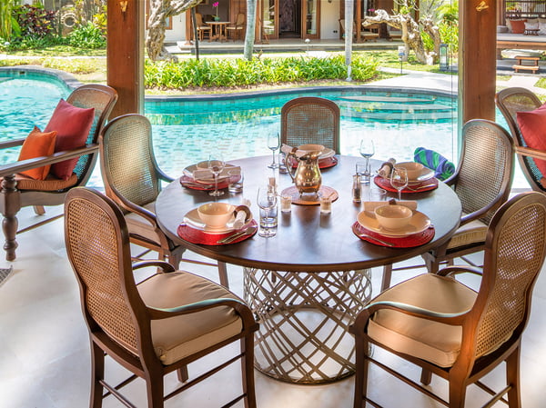 The two Des Indes Villas lie within Seminyak’s sought-after Laksmana Villas, moments from Petitenget Beach and some of Bali’s most iconic, restaurants, bars, boutiques and spas. These luxury villas comprise the five-bedroomed Des Indes II and four-bedroomed Des Indes I. Des Indes II offers old Bali-style open-concept living in surroundings that are remarkably quiet given the proximity to Seminyak’s many attractions. With multiple indoor and outdoor living and dining areas and two private swimming pools, the villa accommodates up to 10 adults and four extra children – perfect for extended families and groups of friends who enjoy holidaying together but appreciate their own private space. Villa Des Indes I lies just a two-minute walk away and is distinguished by its heritage joglo that was once the home of a Javanese aristocrat and now forms a palatial living pavilion. The two master bedroom pavilions, which encircle a 21-metre lagoon-style pool, are generously proportioned, with deep verandas and tropical garden showers. Two comfortable guest suites occupy an adjacent two-storey pavilion. Within the villas' pavilions are a wealth of colonial-style furniture, prized antiques, ceramics and artefacts. Counterpointing the heritage influence are more contemporary luxuries, including top-range King Koil mattresses, crisp cotton bedlinen, and satellite channel TVs in every bedroom. Adding to the sense of luxury is a staff team dedicated to making guests feel special. Among them is an accomplished chef who can prepare meals throughout the day according to a reasonably priced menu. And for those who can tear themselves away, classic Bali restaurants and beach bars such as La Lucciola and Potato Head are a short stroll away. Feel the vibrant beat of Bali right at your doorstep. These luxurious villas are in a sensational central location, affording guests with a penchant for nightlife and entertainment, immediate access to Bali’s famed beach clubs and restaurants. If you love great music and a lively vibe, this is the villa for you. Together, the two villas offer nine bedrooms. Click on these links to find out more about five-bedroomed Des Indes II and four-bedroomed Des Indes I, or visit the Des Indes Villas website to find out how the villas can be combined to suit your holiday needs.