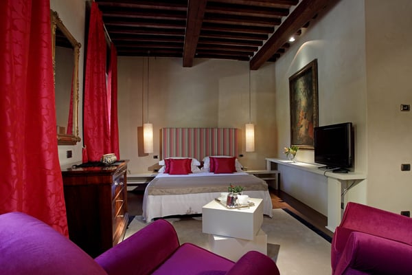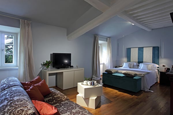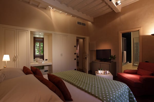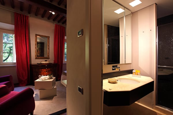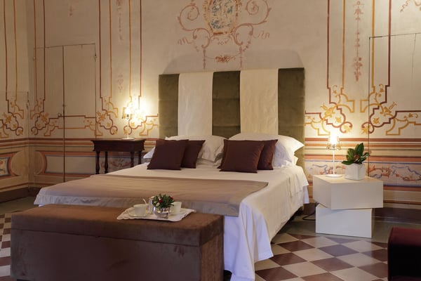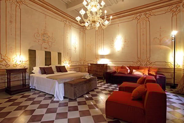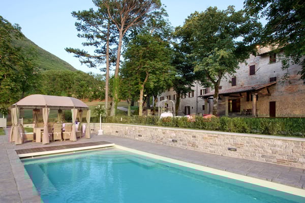 Prestigious historical residence with swimming pool in the soft rolling hills of Umbria, just a few kilometers from the enchanting medieval town of Gubbio. Surrounded by a luxuriant centuries-old park that contains a swimming pool with jacuzzi, Villa Benveduti is ideal for guests in search of nature, art and that special relaxing holiday. This beautifully restored property, dating back to the late 1700’s, retains and revives the splendor of the time with its elegant, refined and comfortable interior. The wonderful rooms with frescos, stuccos and original furniture preserve the charm and aristocratic elegance of the villa. A lift and a staircase lead from the living area on the ground floor to the first floor which includes ten luxurious bedrooms all with en-suite bathrooms, satellite TV, minibar and air conditioning. Villa Benvenuti is also the perfect base for exploring the charming nearby villages, such as Assisi, Città di Castello, Spello, Todi, the Lake Trasimeno and Perugia, as well as Cortona and Arezzo in Tuscany and Urbino and Frasassi’s Grottos in the Marches. CIN: IT054024B902034084