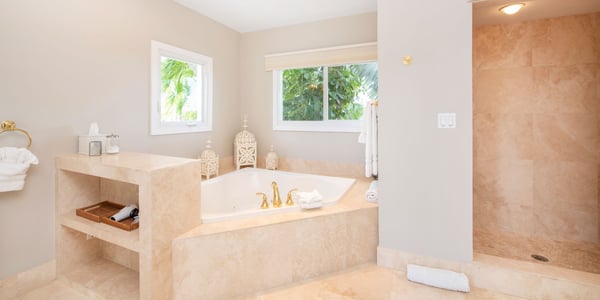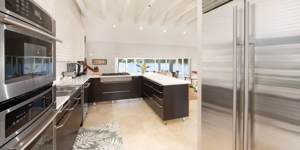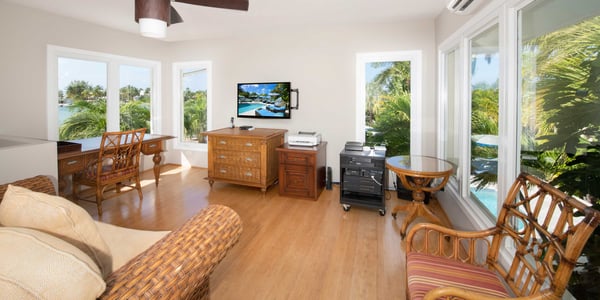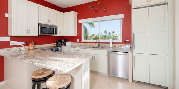 Welcome to Kaiku, a lavishly landscaped, gated estate in Cayman Kai. This sprawling villa sits on a double lot consisting of a 6-bedroom, two-story main house plus a detached, large 2-bedroom guest house over a double garage. This luxurious estate can accommodate 18 guests, or 16 adults max, making it the perfect island retreat for a large family vacation, or a relaxing adult getaway. Situated on the island's Bioluminescent Bay in lovely Cayman Kai, guests will enjoy calm waters excellent for paddle-boarding and kayaking. With four bedrooms located on the upper level, one on the lower level, and a new Zen Garden bedroom, guests will have plenty of space to unwind at the end of the day. Equally impressive is Kaiku’s 2-bedroom guest cottage with panoramic windowed views. Beautifully furnished with sleek decor, a kitchenette, and modern appliances, it's the perfect option for members of your group needing additional privacy. Beach Notes The entire island is only 22 miles wide from west to east, so you are never too far from anywhere on Grand Cayman. The cove-front homes in Cayman Kai offer calm serene water for docking a rental boat, permitting charter boat pick-up, or just safe shallow swimming for little children. Adults won’t swim in the cove as nearby Rum Point is too nice by comparison--the water is shallow with a softer bottom and no reef for marine life. You get the boest of both worlds at Kaiku: a private backyard pool with spa, boat dock access, plus proximity to the Rum point Club. There is usually little breeze here to speak of--many homes in Cayman Kai offer a screened porch to keep flying bug and insects at bay. The big draw to this area is the proximity to the Rum Point Club, a public beach club that offers a fantastic barefoot beach, water sports, a restaurant bar and grill, a gift shop, and pick-up beach volleyball games. Also, nearby is the Kaibo Yacht Club restaurant, bar and marina. Overall, the area is a great neighborhood dotted with million-dollar oceanfront villas. Lastly, about 20 minutes east we have two large resorts (Morritt's and The Reef) that offer manicured beaches as well as restaurants, a modern grocery store, liquor store, gift shops, a Subway sandwich shop, and a cafe/pastry shop. These two resorts also offer scuba, snorkel trips, jet skis, windsurfing, kiteboarding, oceanfront pools and bar service. General Grand Cayman Beach Notes All beaches in Grand Cayman are technically “public” since the Queen owns up to the high watermark and the shoreline quality behind your property may vary seasonally. Be advised that the beach or water entry behind your property may vary slightly from the images on our website because of the weather. The next-door beach is also always available for your use. Ocean Debris and Sargassum Seaweed Beaches in Grand Cayman may also experience floating ocean debris and sargassum weed seasonally. Sargassum is a generally harmless floating seaweed that has increased in frequency in recent years. Although sargassum is an unsightly nuisance, it is largely seasonal in summer. Our owners do make efforts to remove heavy sargassum and will have the beach raked prior to your arrival. We try our best to work around mother nature.