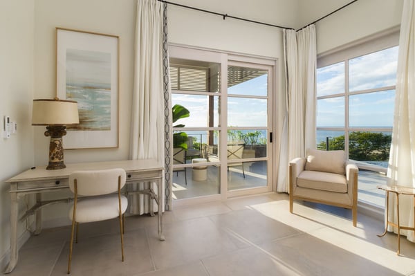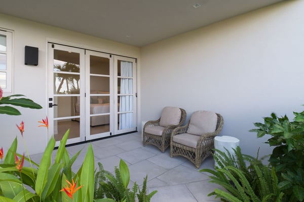 - Airy indoor lounge with full wall to wall folding doors opening to scenic ocean vistas