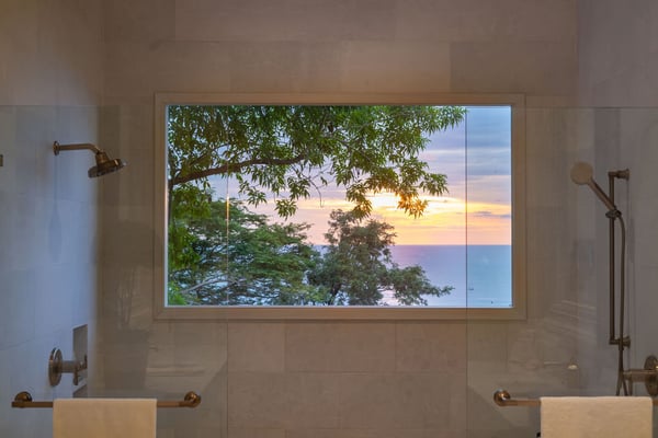 - Twin showerhead- Enjoy a warm rinse with a glowing sunset framed by beautiful trees and sea views - Twin showerhead