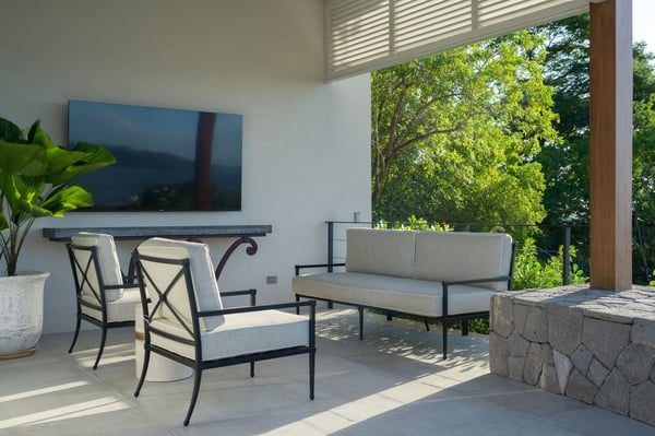 - Watch a movie or game ou- Lounge under shade with cushioned chairs and lush views of the treetops - Watch a movie or game ou