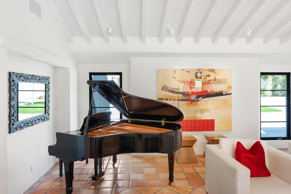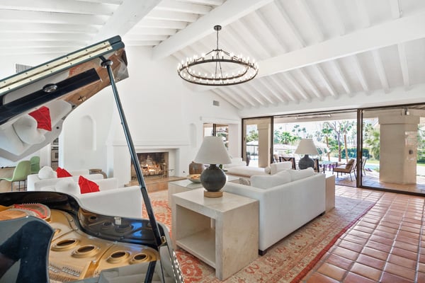 Nestled on over 1.5 acres with 360-degree views of the majestic San Jacinto Mountains, Bella Vista Estate is one of the largest tennis estates in Palm Springs. This private and gated property has played host to a multitude of VIP guests, including politicians, sports figures, and Oscar winners. With a Main House and Casita offering 5 bedrooms and 5.5 bathrooms, it accommodates up to 10 guests. Located in Andreas Hills, the finest hiking trails in Palm Springs are a quick walk away. Guests will delight in sunning on the Baja tanning shelf in the private 50-foot pool, practicing their short game on the putting green, or serving a relaxed match on the tennis and pickleball court. Step inside the Main House, where glass doors and picture windows capture the magnificent mountain views. In the living room, dramatic 18-foot cathedral ceilings and sumptuous seating beget a refined space to enjoy a book or an evening with friends around the grand piano or fireplace. A formal dining room with a table for 8 and a breakfast nook that seats 4 connects to the living space and flows into the well-equipped kitchen, featuring high-end appliances. Gather in the den for a viewing party on the 85” TV—there is seating for 20! The lavish primary bedroom with a king bed and fireplace overlooks the pool and grounds. The 1st guest room has a king bed and an ensuite bath, and the 2nd guest bedroom has a queen bed, an ensuite bath, a furnished loft and a desk. On the sprawling grounds, towering palm trees and sweeping mountain views frame the 50-foot lap pool and 8-person Jacuzzi. Lounge in the outdoor living room and revel in the desert climate, or head to the tennis court and putting green for a low-stakes tournament. An outdoor kitchen with a built-in grill and fireplace, along with the 12-person table under the portico, encourages alfresco dining. Past the pool, the Casita is perfect for additional guests. It includes two private bedrooms, each with an ensuite bath, one with a queen bed, and one with a queen sleeper sofa. With parking for up to 12 cars inside the gates, an extraordinary escape of luxury and leisure awaits at Bella Vista Estate in Palm Springs. Book this outstanding estate today! City of Palm Springs No. 5554