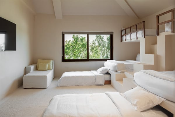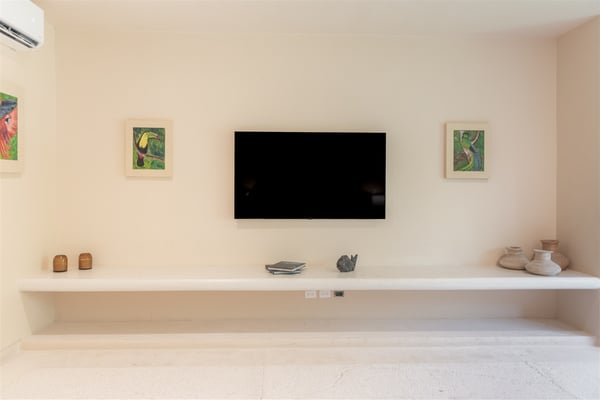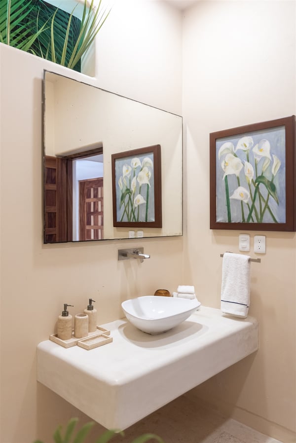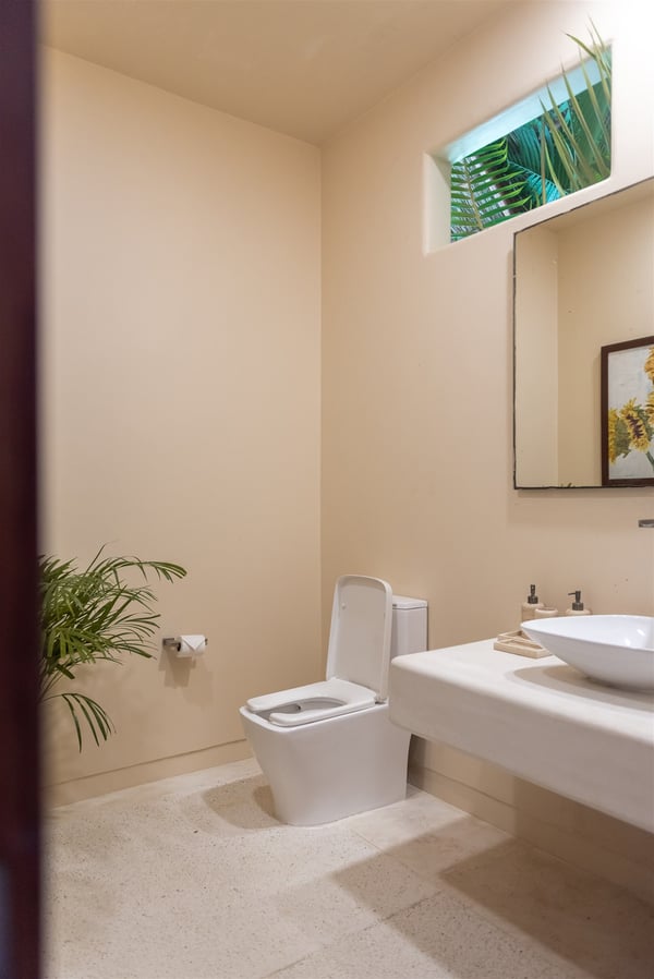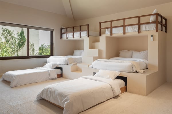 Nestled in the tranquil Caleta area of Puerto Aventuras, Casa Cangrejo Feliz is a beautiful zen-style villa that offers the perfect blend of modern comfort and serene, natural beauty. This spacious open-plan home is designed to seamlessly integrate with its surroundings, offering stunning views and plenty of light-filled spaces. With its soothing atmosphere and sleek, minimalist aesthetic. Located on the shores of Puerto Aventuras Caleta with the Mayan Ruin Chac Hal Al, you are a short distance by car from Central Park, with it’s wonderful nature trails, outdoor gym and restaurants. The Puerto Aventuras Marina has boutiques, restaurants, aquatic activities and more. Playa del Carmen with it’s iconic 5th Avenue is 15 minutes by car. Akumal is 15 minutes south and Tulum Beach is 30 minutes away. Casa Cangrejo Feliz’s 5 bedrooms with en-suite bathroom offer ample space for 16 guests. The villa interior is tastefully decorated with a zen style combining indoor and outdoor living, creating a sooth ambiance that welcomes you from the moment you step inside. The villa is equipped with all the amenities you need for a comfortable stay, including WIFI, Smart TVs, gourmet kitchen, large indoor dining table, The villa features elegant open living spaces, expansive terraces, and a private pool, perfect for unwinding in style. Whether you’re enjoying a quiet evening on the patio or basking in the sun by the pool, the home’s tranquil setting promises a truly rejuvenating experience. Casa Cangrejo Feliz’s direct access to the Caleta is a peaceful retreat that is ideal for those seeking relaxation, privacy, and luxury.