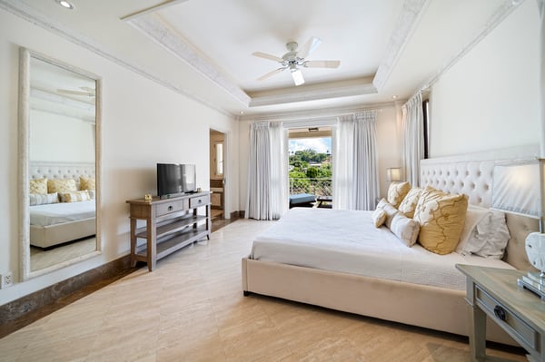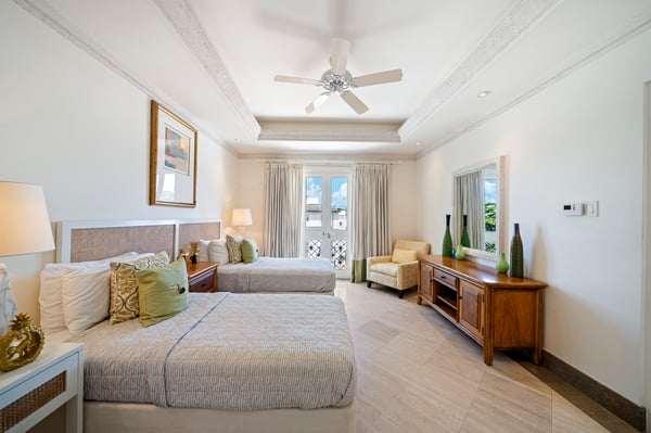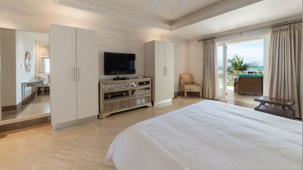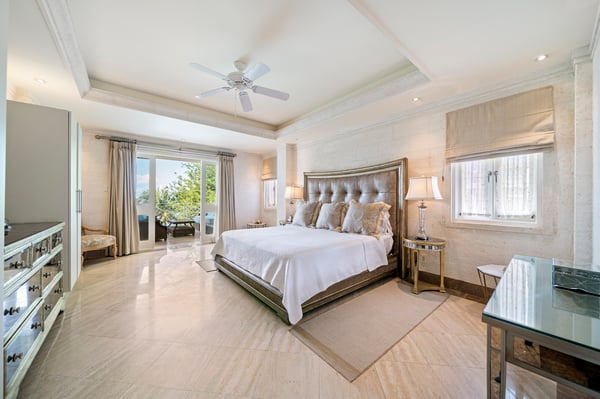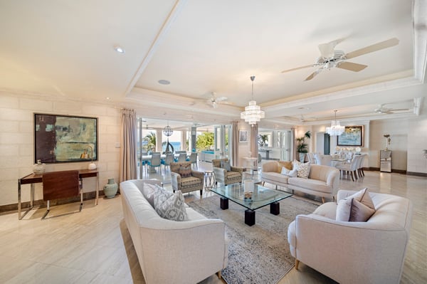 Experience luxury living at Smugglers Cove 6, a stunning upper-floor, 5-bedroom beachfront condominium on the pristine shores of Paynes Bay Beach, one of Barbados' finest West Coast beaches. One of only seven units in the luxury complex, this villa offers breathtaking panoramic views of the Caribbean Sea and round-the-clock security for your peace of mind. Each spacious bedroom at Smugglers Cove 6 seamlessly combines Caribbean charm with modern luxury, featuring elegant design and essential amenities such as air conditioning and en-suite bathrooms for ultimate comfort and privacy. The bedrooms are appointed with king-size beds, with the second bedroom offering the flexibility of twin beds that can convert into a king-size bed. The master bedroom delights with stunning ocean vistas from its private terrace, ensuring a delightful waking experience each morning. Step inside Smugglers Cove 6 to discover its elegant blend of classic Caribbean flair, highlighted by coral stone walls, marble flooring, and luxurious furnishings throughout. The grand living room, adorned with a crystal chandelier, provides a serene retreat after a day of exploration. Adjacent, a modern European kitchen and separate indoor dining area cater to every comfort, seamlessly integrating with the spacious layout and expansive covered terrace for an open living experience that enhances relaxation amidst the Caribbean ambiance. Guests can unwind on the large covered terrace, enjoying uninterrupted sea views from every angle. A private plunge pool invites relaxation in a serene Caribbean atmosphere, while alfresco dining against stunning sunsets is enhanced by ample outdoor seating and a large dining table. A patio bar offers the perfect spot for sunset drinks, completing the idyllic setting. Discover why Smugglers Cove is renowned for its unparalleled luxury and prime location, making it the ultimate choice for your Barbados vacation. Additional amenities include access to a communal pool, direct beach access with provided sun loungers, and proximity to top attractions like Holetown, just a short drive away. Whether lounging poolside, savouring breakfast on the patio, or exploring nearby Holetown, Smugglers Cove 6 promises an unforgettable Caribbean getaway, combining West Coast beach living with luxury villa comforts and family-friendly attractions at your doorstep.
