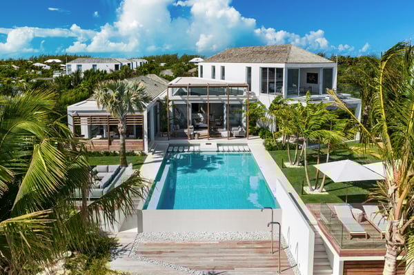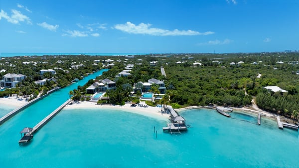 Soaring ceilings, lending a sense of airy spaciousness, greet you as you enter this luxurious six-bedroom villa nestled in one of the most exclusive gated communities in Providenciales. Floor-to-ceiling glass panelling draws the eye to expansive views of turquoise waters and a protected wildlife preserve that beckons beyond. Decorated with an exquisite eye for laid-back elegance. Gracious indoor and outdoor living spaces blend seamlessly in this open-concept plan. With an adjoining fully equipped gourmet kitchen opening onto a shaded al fresco dining area. Outside, verdant grass lawns and swaying palm trees frame an infinity edge pool that spills onto a secluded beach replete with a private dock. Communal spaces abound, making this a superb place to entertain. Finish a glorious day lounging around the fire pit as your favourite tunes are piped through the outdoor speakers. Outdoor enthusiasts can enjoy kayaking from the beach to the nearby mangroves, a sanctuary for birds and home to juvenile aquatic life. Or be picked up from their private dock to explore the vast stretches of white sand beaches on the neighbouring uninhabited cays. Inside boasts no shortage of entertainment, complete with a media room, gym and all the amenities you would expect from a villa of this calibre. Whilst two master bedrooms command uninterrupted views of the cerulean waters of the Leeward Channel.