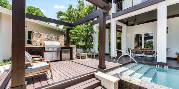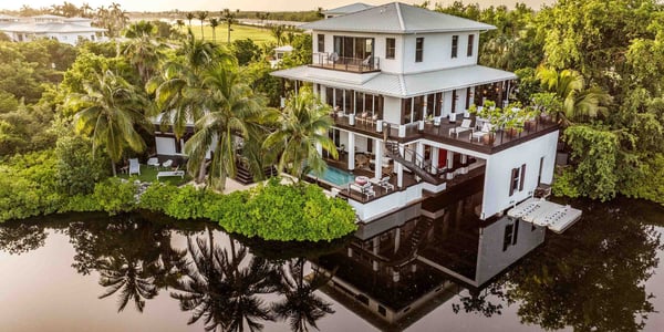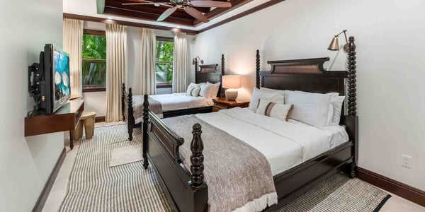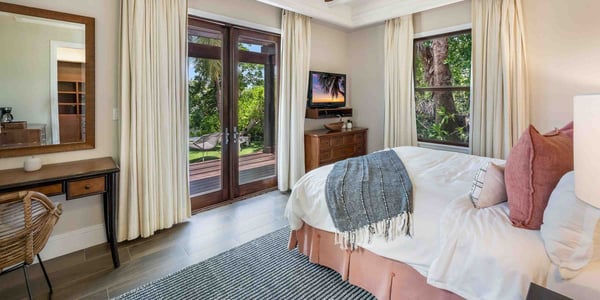 Enjoy unparalleled curated privacy from the moment you step through the entry gate and into the lush gardens surrounding this grand 4-bedroom villa with a 1-bedroom guest cottage. This Balinese-style 5-bedroom waterfront villa spans almost 9,000 square feet across three levels of elegant indoor and outdoor living spaces with sweeping panoramic views of The Ritz-Carlton Golf Course, as well as calm canal views. Your property manager will help to set up a Ritz-Carlton Resort Account upon arrival. Our guests will have access to all of the services the Ritz-Carlton offers, as well as restaurant, cabana, spa, and tennis or golf reservations. The Ritz-Carlton also has a kids' camp. The resort features large shared pools, however, your private infinity pool will be enjoyed more by family and friends. A poolside BBQ and multiple sundecks add to your quiet enjoyment. Popular with our guests is a private stingray sandbar charter with pick-up and drop-off at the villa. You will find 4 bedrooms in the main villa plus one bedroom in the detached guest cottage. There are three luxurious ensuites in the main house, including an oversized shared bathroom on the lower level connecting two guest bedrooms. There's also a powder room on the main level.