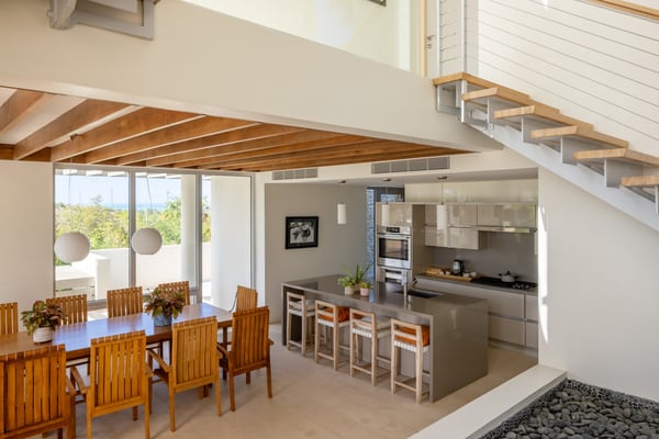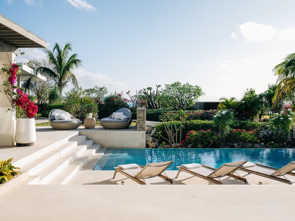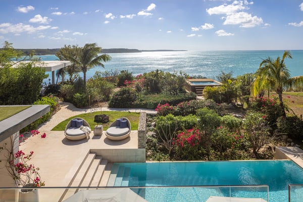 A clifftop eyrie perched above Little Bay on Anguilla’s northern shoreline, ÀNI offers an entire, private resort on this jewel of a Caribbean Island, designed exclusively for a single group of guests. Surrounded by vivid-green indigenous flora on three sides, the two-acre (half a hectare) property embraces awe-inspiring, azure views of the Atlantic Ocean just a four-minute stroll from secluded Little Bay Beach. Consummately private yet easily accessible, ÀNI can accommodate up to 20 guests across four Ocean View Suites, two Ocean View Guestrooms, and four Guestrooms. These are housed in two elegant villas – North and South – both fronted by private swimming pools and a host of atmospheric, view-drenched areas including alfresco hot tubs, viewing platforms, and cliffside pavilions. ÀNI’s four Ocean View Suites, two Ocean View Guestrooms, and four Guestrooms are positioned across two separate villas resting side by side. Called North and South, they are almost perfect mirror images of each other in their striking contemporary design, boasting tiered terraces and roof decks over three stories to maximize the all-encompassing sea views. Featuring extra-height, floor-to-ceiling glass windows and doors, the villas are spacious and light-filled, with indoor dining and living areas on the ground level leading directly to expansive pool terraces. Hair dryers, Nespresso coffee machines, mini bars, and bathroom scales are offered throughout the accommodations. A private paradise seemingly perched between heaven and sea, ÀNI offers every facility, amenity, space, and service a group of guests could possibly desire during their stay. Designed to take full advantage of the property’s breathtaking views over the Atlantic Ocean, internal spaces feature glass walls or doors and flow seamlessly outward to embrace two sparkling pools, indigenous gardens, and the panoramic vistas beyond. While there is no direct beach access, two golf carts are available for getting to and from Crocus Bay Beach. More adventurous guests can walk the four minutes to Little Bay Beach and descend the steep cliff path, aided by a rope, to reach its pristine white sands. A stay at ÀNI is all-inclusive, from every personalized meal, daily spa treatments, a range of tailored excursions, and a comprehensive menu of kids’ activities. This means no hidden costs or price lists; just pure relaxation and the time and space for guests to focus on what is important to them.
