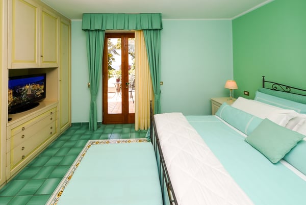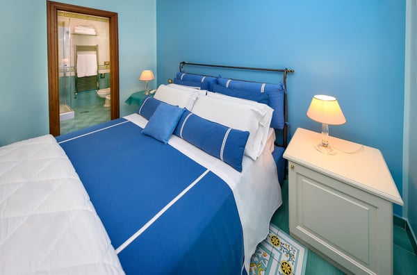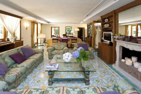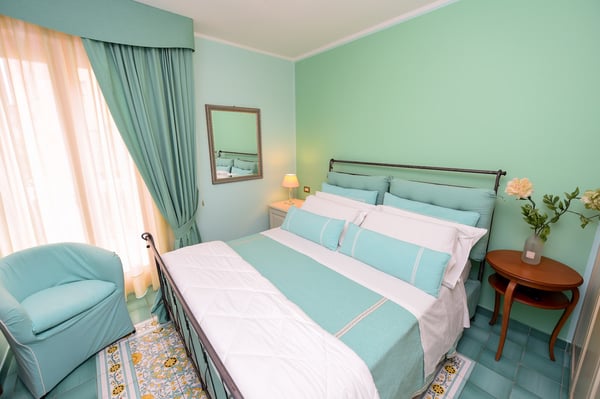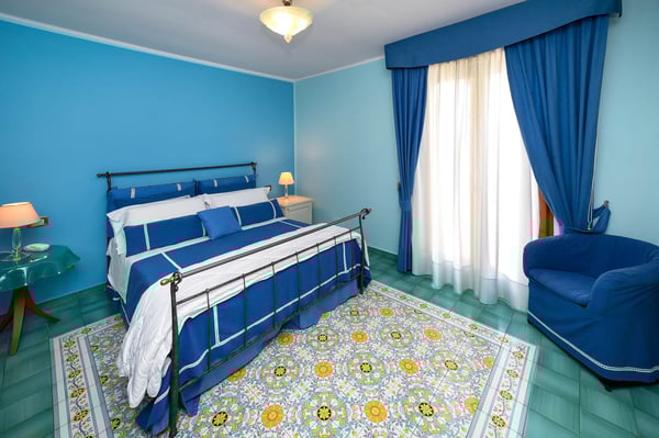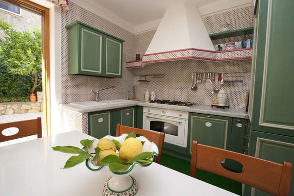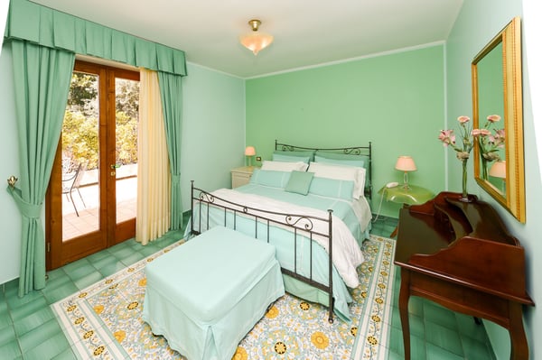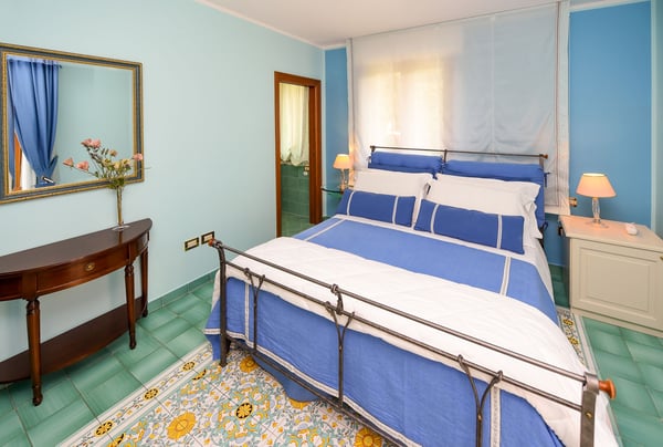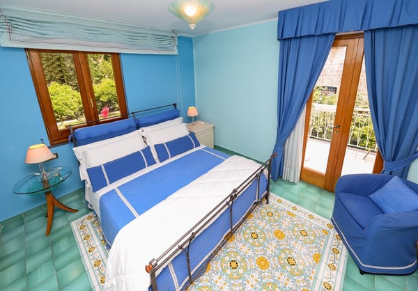 Sorrento is praised for its beautiful coastline, and it is also believed to be the place where Odysseus was lured by mermaids: in Punta Campanella, you can still see the remains of the Temple of Athena which, according to legend, was built by Odysseus to thank the Goddess after having passed unharmed through a stretch of Siren-infested sea, himself tied to the mast of his ship while his companions’ ears were plugged with wax. Located in the old city center of the lively Sorrento, Villa Giada is set in a very quiet and private area, and yet only a 3-minute walk from the main square. A few steps from the villa, there is a lovely public garden where guests can stroll and enjoy fabulous sea views up and down the famous coast. The two-story villa is ideal for guests who prefer to not use a car while on vacation; in fact, thanks to the villa being so close to both the train station and the ferry dock, guests can explore the sights by using public tranportation or by hiring a driver for the day.