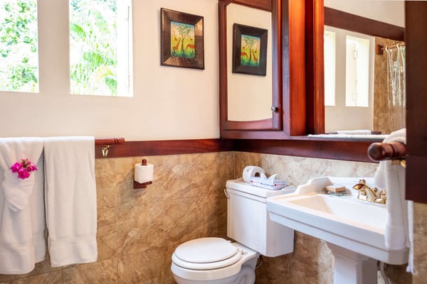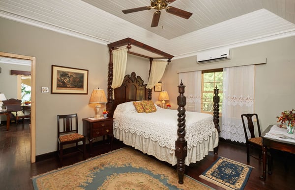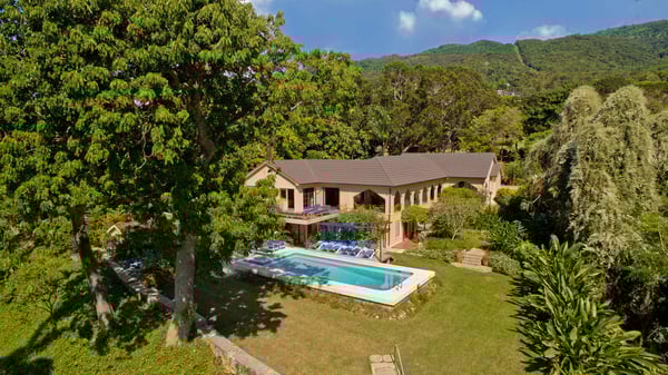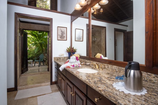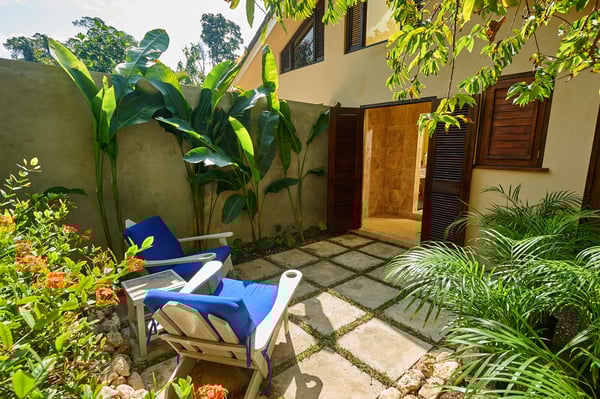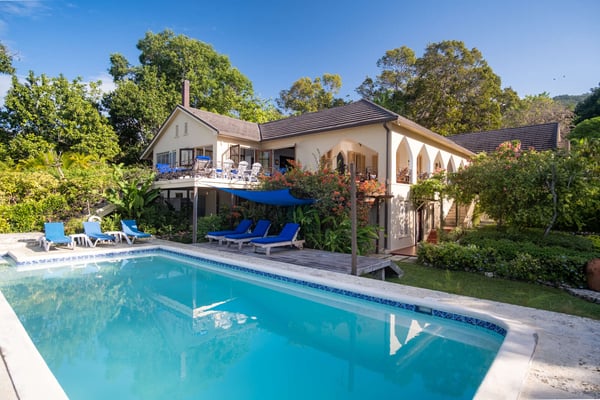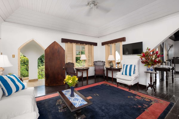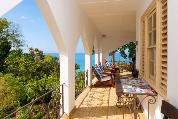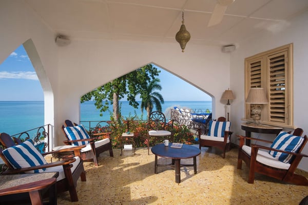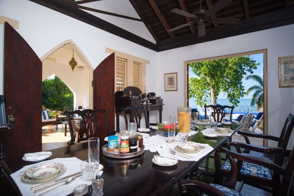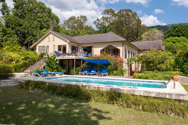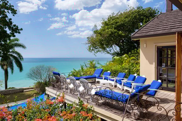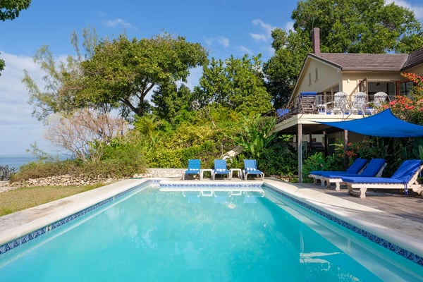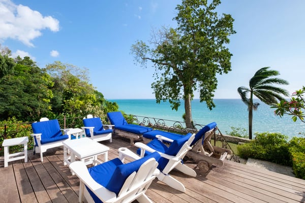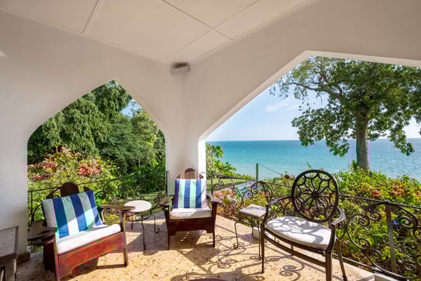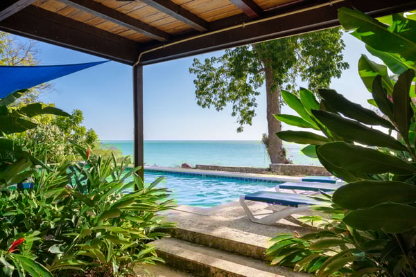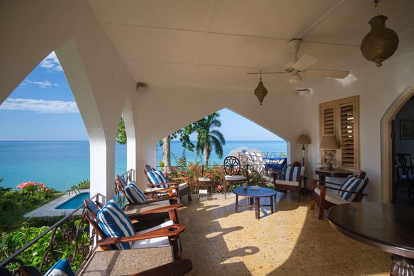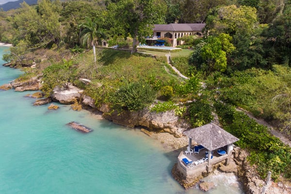 Perched thirty feet above the sea with commanding views, Mullion Cove is the original prototype for Bluefields Bay Villas. The villa features a cool veranda, tropical flower garden, outdoor tub off the primary bathroom, private seaside gazebo and beachfront.