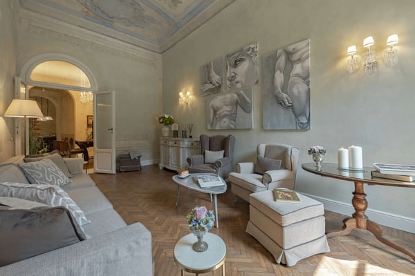 Florence is more popular than ever, with 16 million visitors pouring in each year attracted by its architectural heritage – one of the richest in the world – and its renowned food culture. The city is a pulsing open-air museum and offers sophisticated shopping and a plethora of exceptional dining choices as well. In the middle of it is Capital, an exclusive deluxe prestigious apartment ideally located in the historic city center. This unique property occupies the first floor of a historical building with an elevator and features four elegantly furnished en-suite bedrooms. Capital is a real dream home, refined and very comfortable, with all the famous monuments just a few steps away.