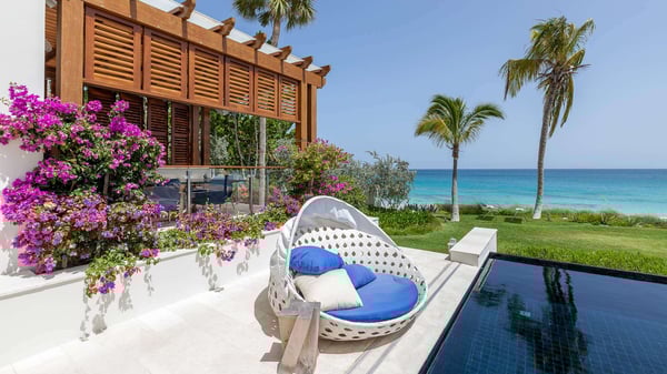 Situated right on Barnes Bay, this estate, one of the finest villas in Anguilla, has undergone a remarkable two-year transformation overseen by architect Deborah Berke and designer Scott Salvator. Embrace the beauty of a pristine beach and its serene, clear waters, ideal for delightful swimming and snorkeling adventures. An outcropping of rock ensures the beach remains private, while the villa's westward orientation treats you to breathtaking sunset views. The interiors seamlessly connect to the spacious decking, pool, and both sunny and covered outdoor areas. Both the main luxury villa and annex offer abundant living spaces on each floor, and all nine principal bedrooms provide stunning ocean views. With wooden cypress floors and meticulously crafted details bathed in ample natural light, the villa conveys a welcoming and cozy ambiance. The guest house, situated a bit farther from the main villa, is available upon request and offers a perfect accommodation option for guests' staff. For those who relish an active lifestyle, a range of engaging activities await, including a lighted tennis court, table tennis, billiards, and a putting green. Water sports enthusiasts will delight in paddle boards, snorkeling gear, kayaks, and a Hobie Cat. Moreover, a generous 1,000-square-foot home fitness center is available, complete with a personal trainer and a yoga instructor to enhance your well-being. Families will find special joy in the activities coordinator, ensuring kids have a fun-filled time with four hours of daily entertainment. Indoors, the villa provides a home theater with a large flat-screen HD TV, along with extensive collections of movies, books, music, and board games, making sure there's never a dull moment. Located just 2.1 kilometers from Meads Bay, this destination offers both excitement and relaxation.