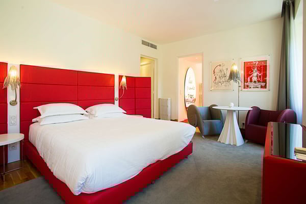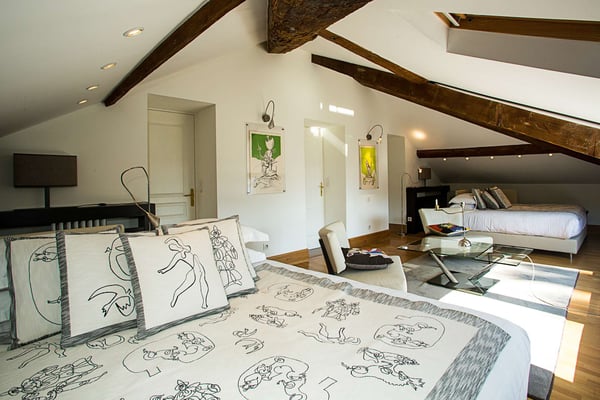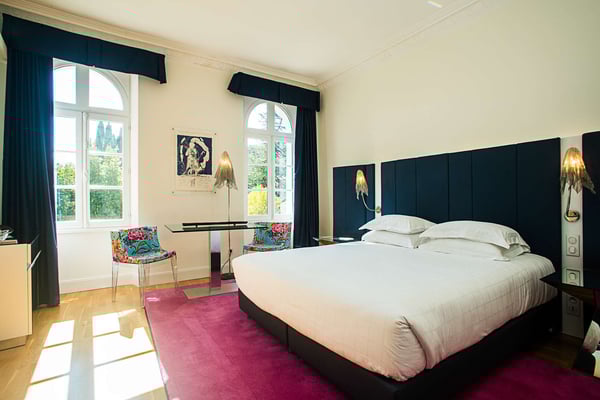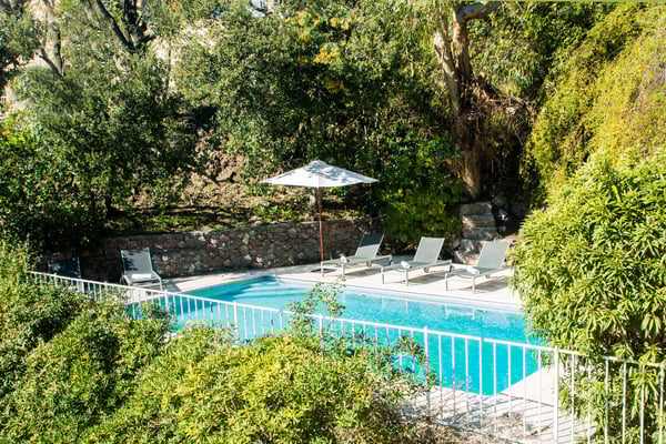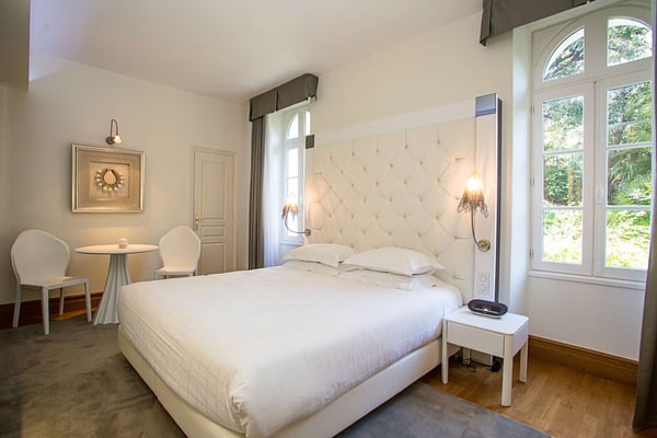 Magnificent and hidden private Villa de Veyre, located just a few minutes from Cannes Croisette, offers Air conditioning throughout, four luxurious bedrooms with ensuite bathrooms, a swimming pool and a great view over the Bay of Cannes. Villa de Veyre gives the option to soak up Cannes, its shopping, beaches and nightlife or to step away for some retreat, relaxing by the pool, walking, cycling and exploring the French Riviera. Villa de Veyre can accommodate up to 10 guests and is part of a luxurious hotel in Cannes (50m from the villa).