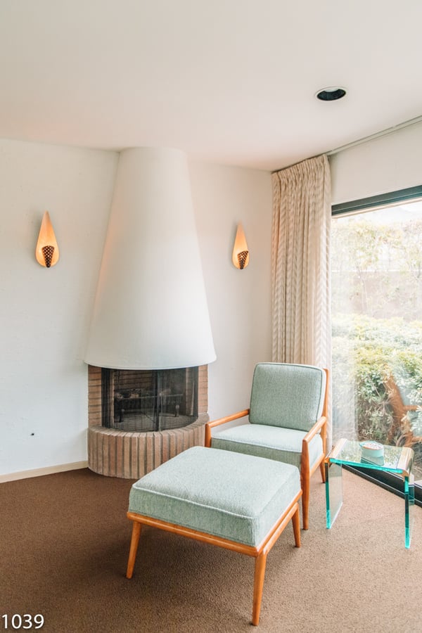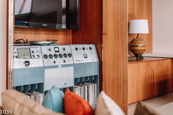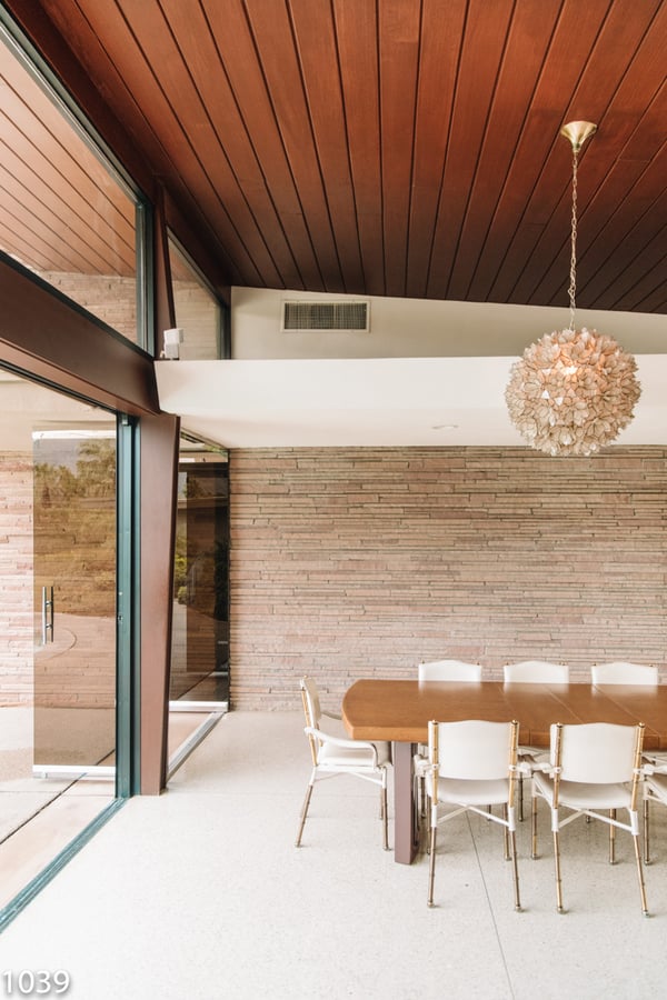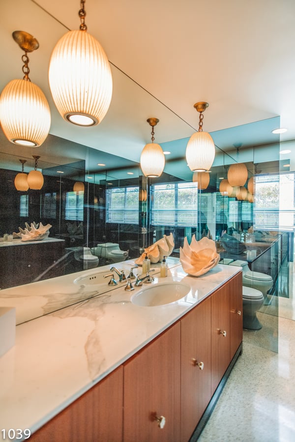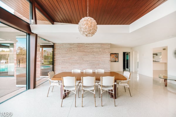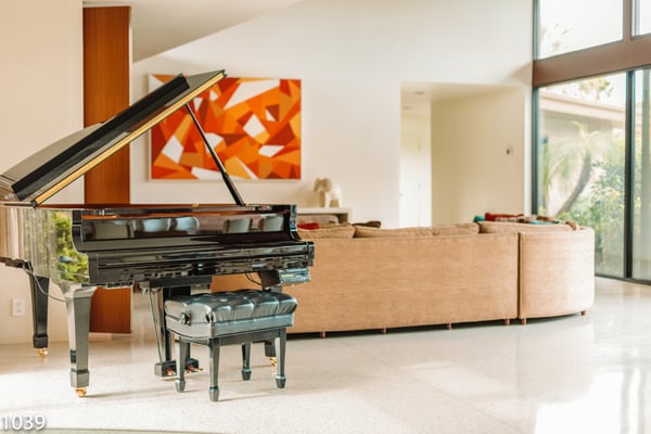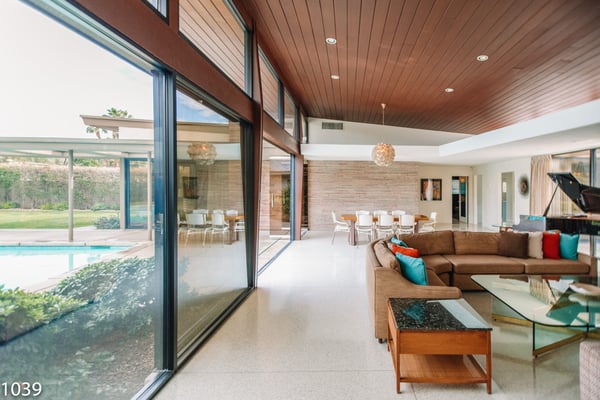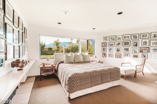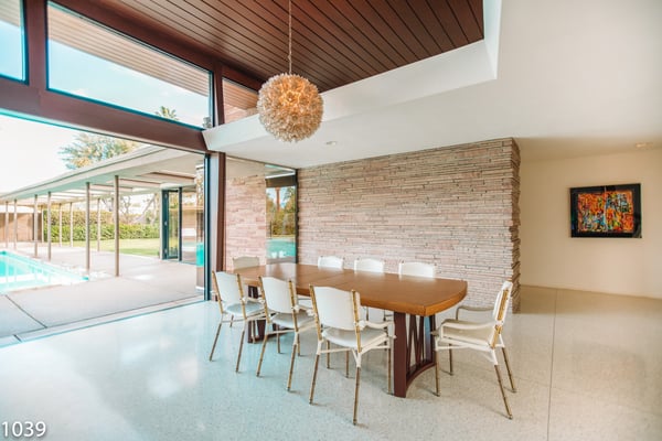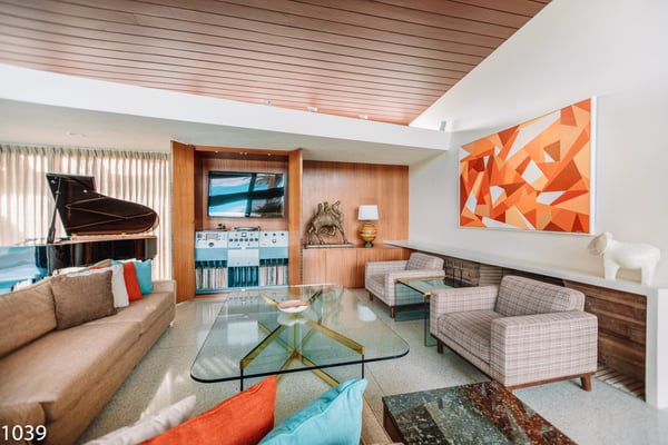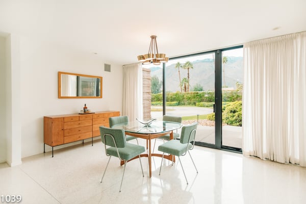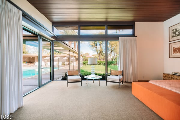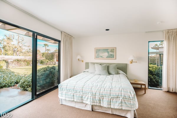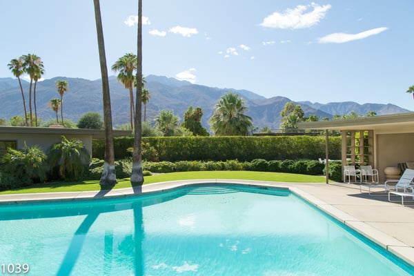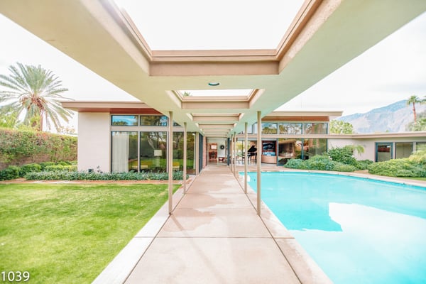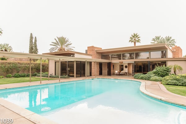 Nearby construction may result in noise disturbances. For further details on how this might affect your stay, please reach out to a Rental Escapes villa specialist. Designed by E. Stewart Williams in 1947 for Frank Sinatra and his first wife, Nancy Barbato, the Twin Palms Estate boasts both mid-century style luxury and historical significance with modern amenities. This Palm Springs architectural gem features exquisite period furnishings such as St Charles cabinets, Terrazo floor tiles, a wrap around sofa, and vintage audio system, not to mention the infamous piano-shaped swimming pool. The home today is perfect for vacationing or special events. The residence includes a primary suite, guest suite, guest bedroom, and an exterior entrance guest room. Each bedroom has an en suite bathroom with an additional powder room in the great room as well as cable TV's. Memorabilia can be seen throughout the home in this preserved architectural residence that was once Frank Sinatra's desert retreat from Hollywood. Other features of this historic home include a pool house with a kitchenette and his and hers cabana-style bathrooms as well as Sinatra's original recording studio still in place (although not connected for use). Twin Palms is located in Central Palm Springs near the Convention Center and Downtown area, and just around the corner from residences once owned by Al Jolson, Jack Benny and Cary Grant in the famous Movie Colony neighborhood. Permit #1039