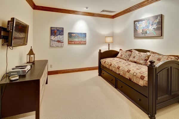 Rental Escapes has partnered with Ski Butlers to offer you the best rental experience in the industry. No more lines. Ski Butlers is a full-service ski and snowboard company that delivers the equipment to you. Contact a villa specialist for more information. Tucked within the coveted Empire Pass neighborhood of Deer Valley, this two-bedroom condo offers guests ski-in/ski-out access to some of the resort’s best mid-mountain terrain. This delightful two-bedroom, two-bathroom condo sleeps up to eight guests and includes amenities such as a shared hot tub, ski locker room, outdoor firepit, grills, and guest lounge. In the Summer, take advantage of the numerous hiking and biking paths nearby. When Winter arrives, snowshoeing and the Nordic ski trails are less than 10 minutes away. Guests will love this home’s cozy atmosphere and proximity to all of Park City’s adventures! Wood beams, hardwood floors, and an impressive stacked-stone fireplace create a mountain aesthetic inside this single-story condo. After a day on the mountain, craft a fueling meal in the spacious kitchen, featuring granite countertops and Viking appliances, while splitting a bottle of wine at the breakfast bar for three that overlooks the living space. Up to six can dine at the formal table. End the evening by sinking back into the soft leather sectional and relish the charming warmth of the gas fireplace. A desk to the side provides a workspace for sending off quick emails. When it’s time to retire, enjoy a night’s rest in the beautiful primary bedroom with a king bed, gas fireplace, private bathroom, and a TV with a Blu-ray player. The guest bedroom has 2 full beds, a TV, and a private bathroom. For extra sleeping accommodations, the den has 1 twin daybed with a twin trundle. A convenient Park City retreat awaits at Silver Strike Lodge 505. Garage parking for one vehicle and complimentary shuttle service throughout Empire Pass and to Main Street make discovering restaurants, après-ski options, and family-friendly entertainment easy. For ski-in/ski-out access, use the Silver Strike Express Lift located through the Ski Lounge on the second floor. To return from the slopes, Silver Strike Lodge is at the bottom of the Silver Buck Run.