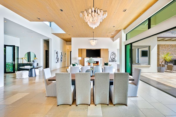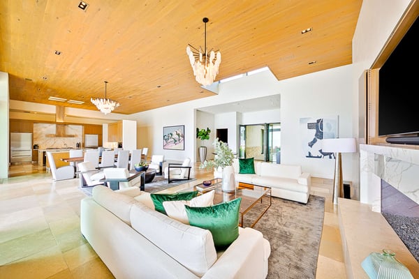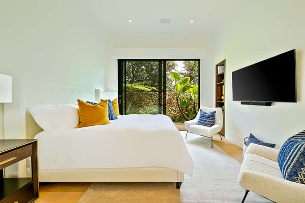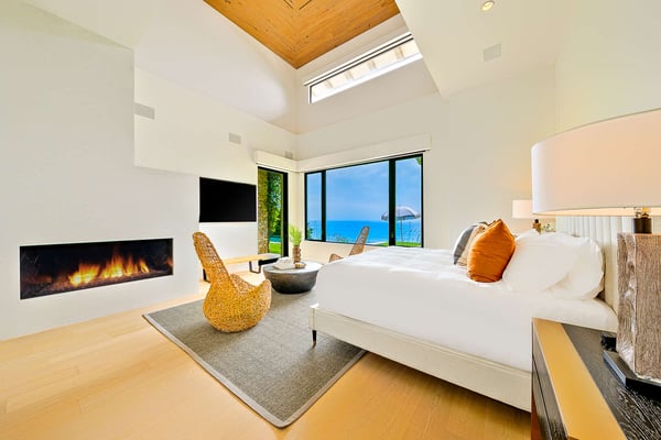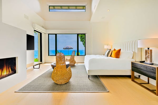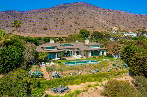 Surf Beach Malibu boasts one of the best views of a local's favourite surf spot along the Pacific Coast Highway. Featuring a 60-ft-wide great room with 16-ft-high ceilings and extraordinary views of the Pacific Ocean. Surf Beach is fully equipped with all luxury amenities including a wet bar, a state-of-the-art theatre, an open chef’s kitchen, a breakfast room, a refrigerated wine cellar, and a well-appointed workout area. Twin primary bedrooms on either side of the villa have ocean views. The beautifully landscaped grounds make Surf Beach a true private oasis. The outdoor area includes an infinity-edge lap pool, with a separate hot tub. The three separate patios give ample space to enjoy family time or morning coffee overlooking the "secret surf beach" from the lower ironwood deck. True Southern California living happens under the outdoor dining pavilion including a Viking barbecue.