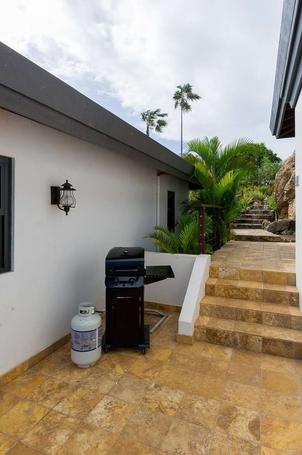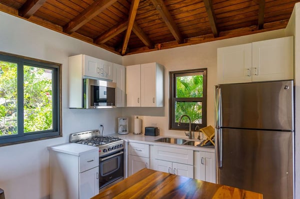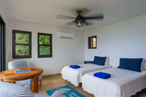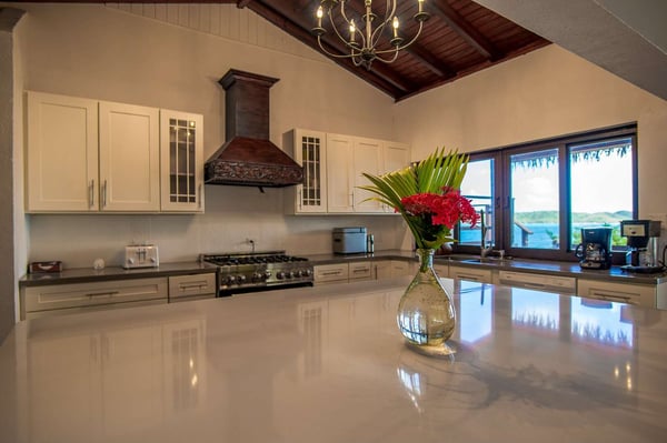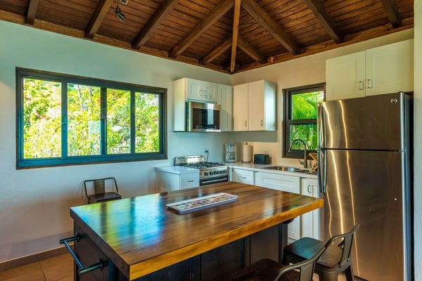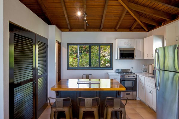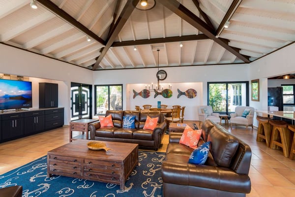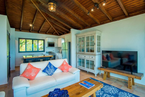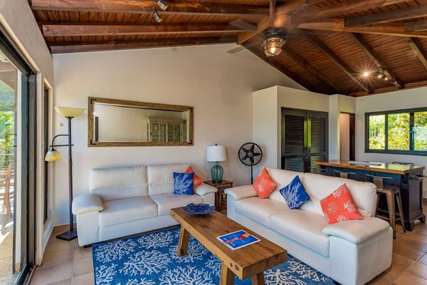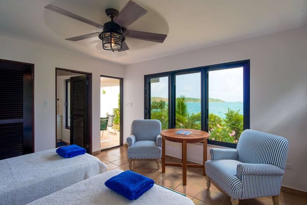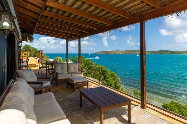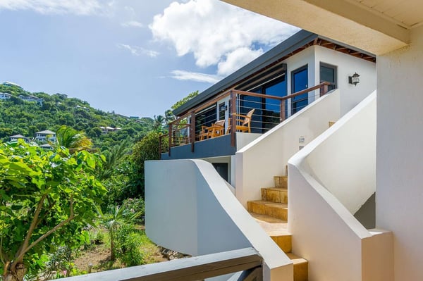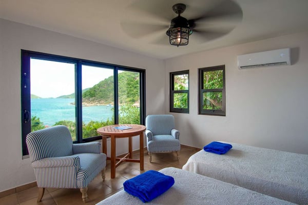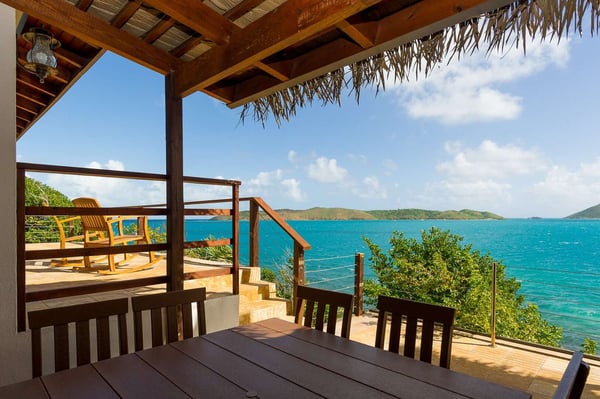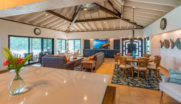 Rainbow’s End’s spacious cathedral-ceilinged great room includes a living area with an entertainment center offering panoramic views from Bitter End Yacht Club to Saba Rock Resort. Ideally suited for intimate island getaways with family and close groups of friends, the great room features an island that seats six, an entertainment center, and secluded areas perfect for hiding away with a good book. The Master Suite boasts a kitchenette and living room area, whilst the lower-level bedrooms have private seaside patios. Outside Rainbow’s End, there is a large expansive deck ideal for soaking in the sun and dining al fresco. This popular Virgin Gorda ocean-view rental is just steps from the beach and is near local dining options and attractions. Guests are welcome to use the facilities at Leverick Bay Resort & Marina, including the pool, tennis courts, and dining.